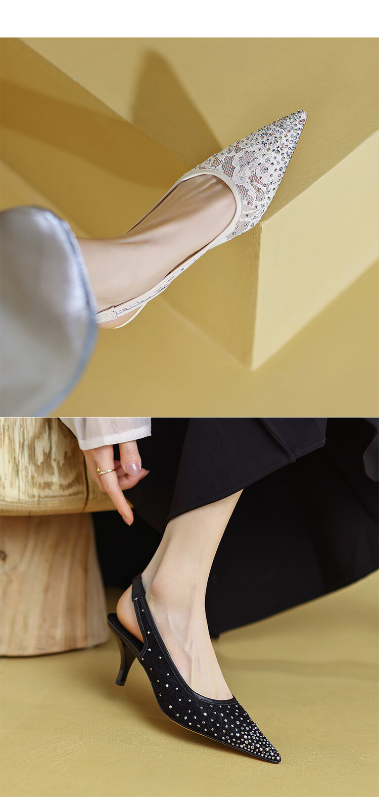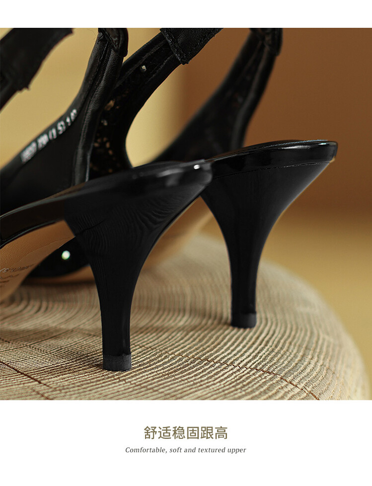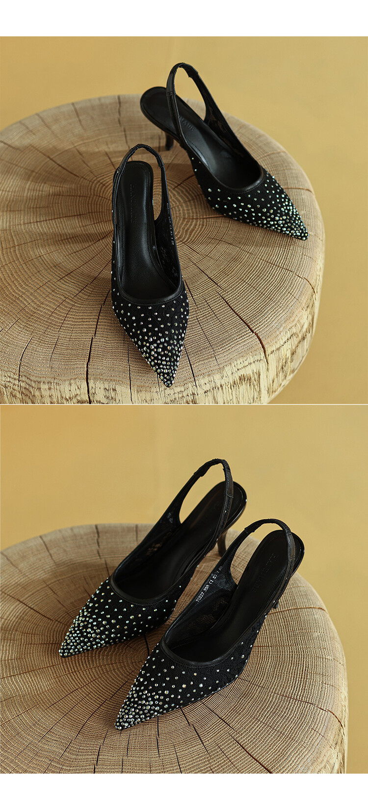 包头尖头亮片,职业杏色淑女鞋高跟凉鞋 OFSM-6537