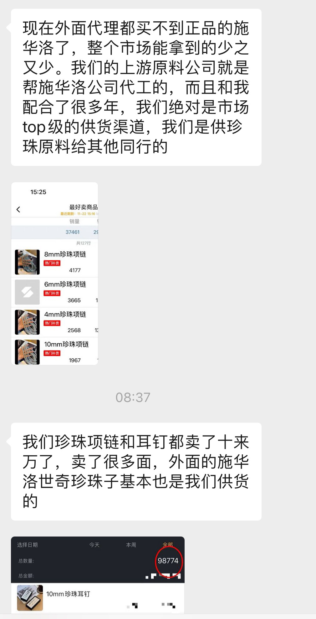 施华洛世奇的珍珠是很多大品牌,比如香奶奶,比如D奥等一线奢侈品常用的一种人造珠子。