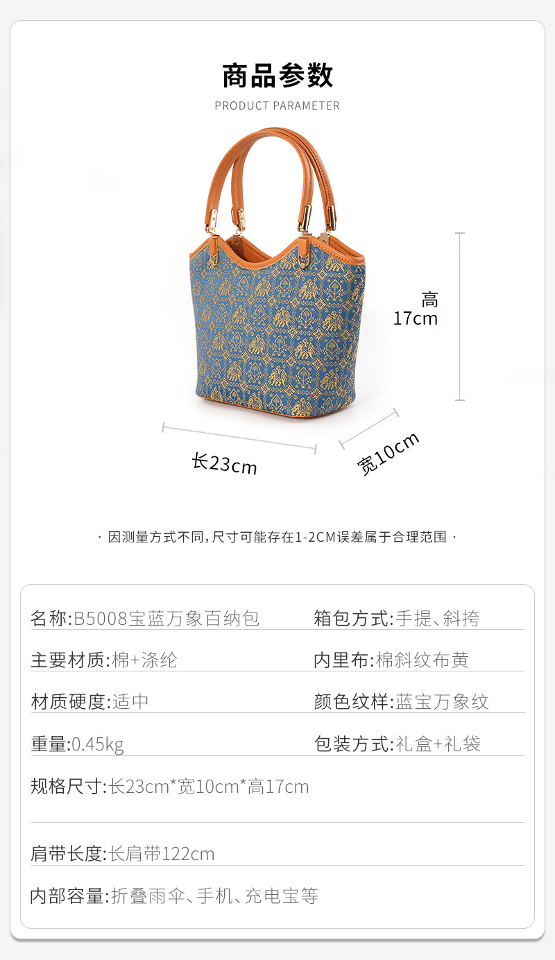 丁摩 壮锦包女休闲单肩斜挎手提通勤托特包菜篮子包6ZF-5603F3