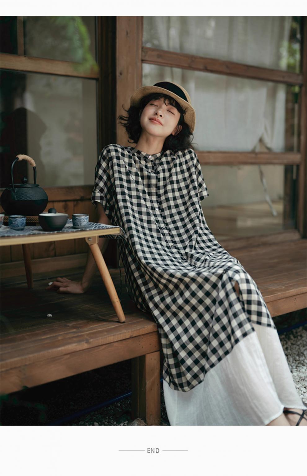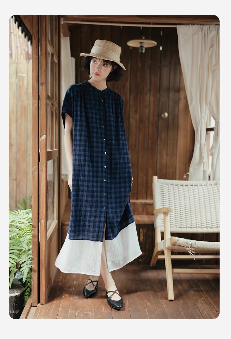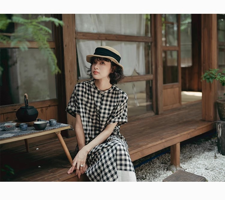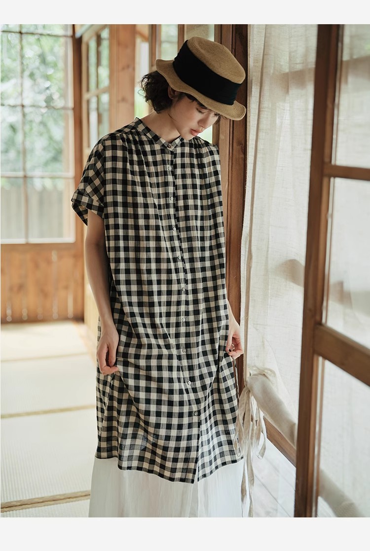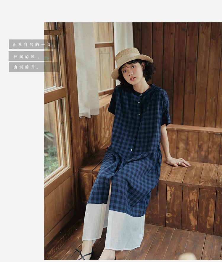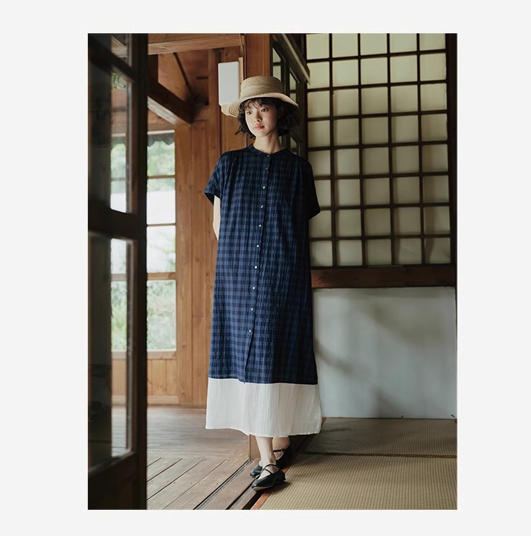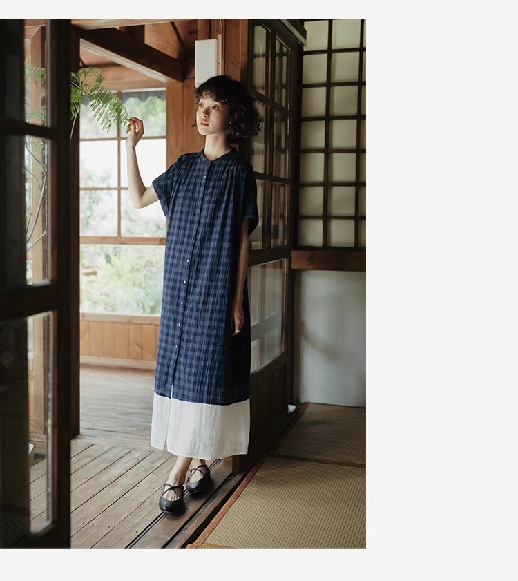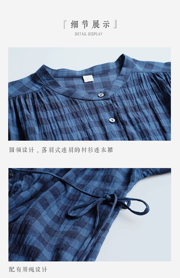 雀说新款文艺休闲松驰感宽松大码女装胖MM显瘦格子拼接连衣裙AL1630