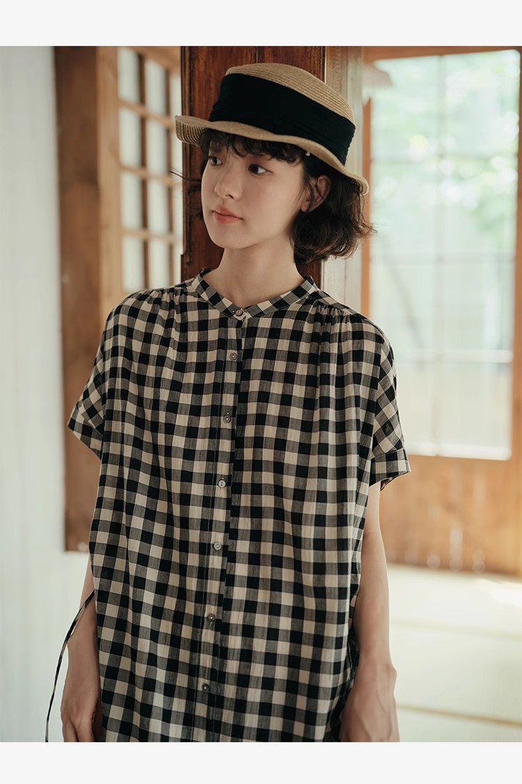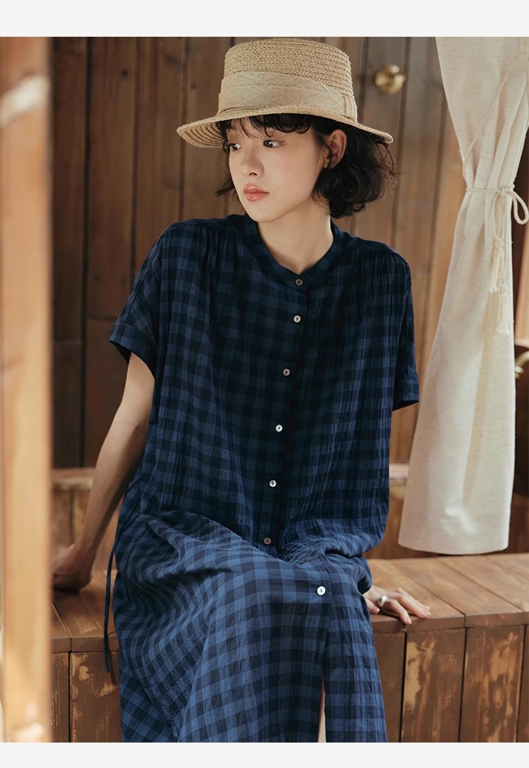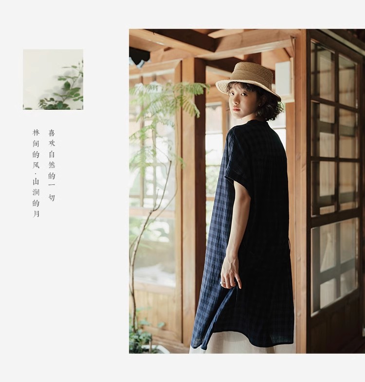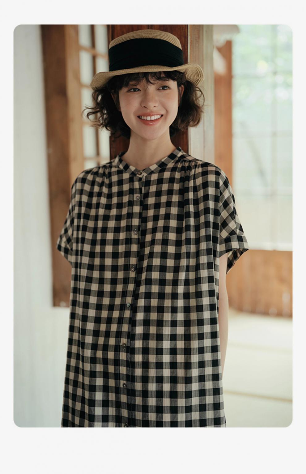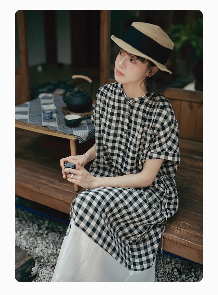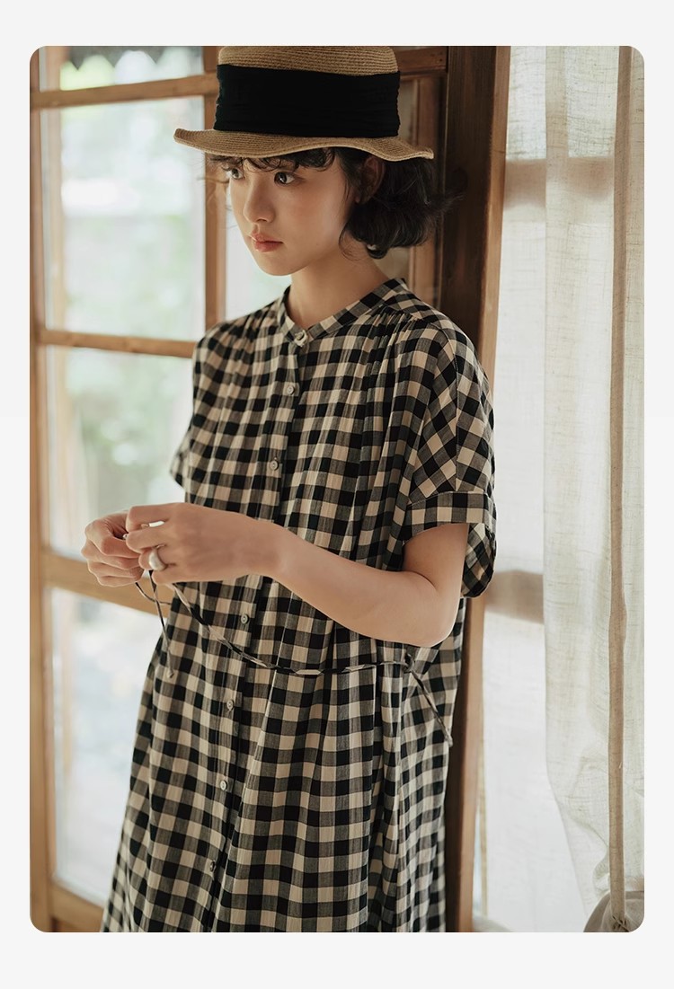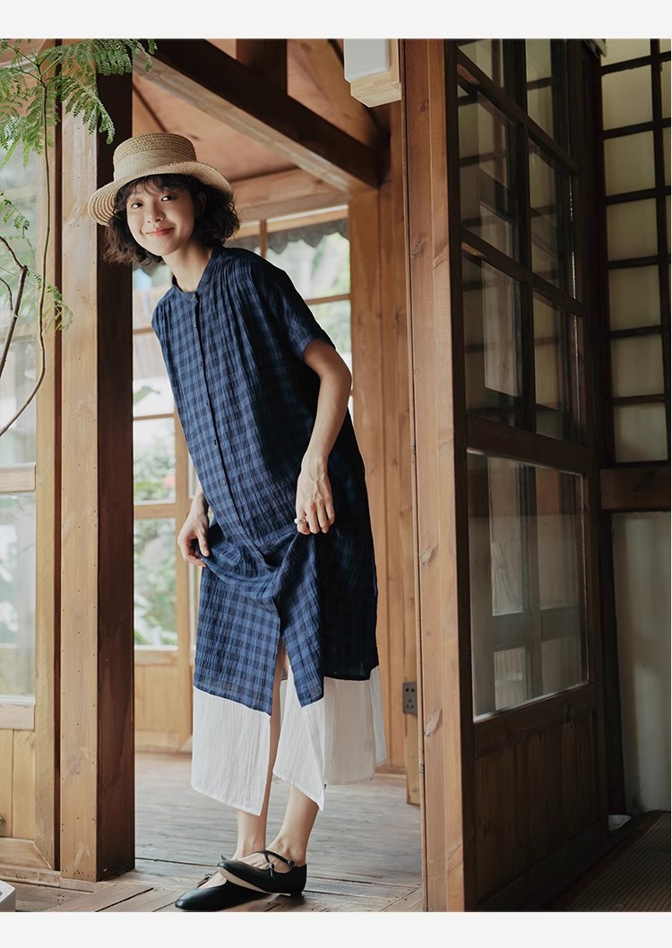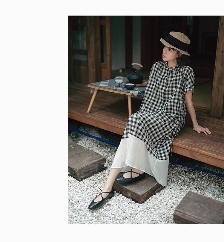雀说新款文艺休闲松驰感宽松大码女装胖MM显瘦格子拼接连衣裙AL1630