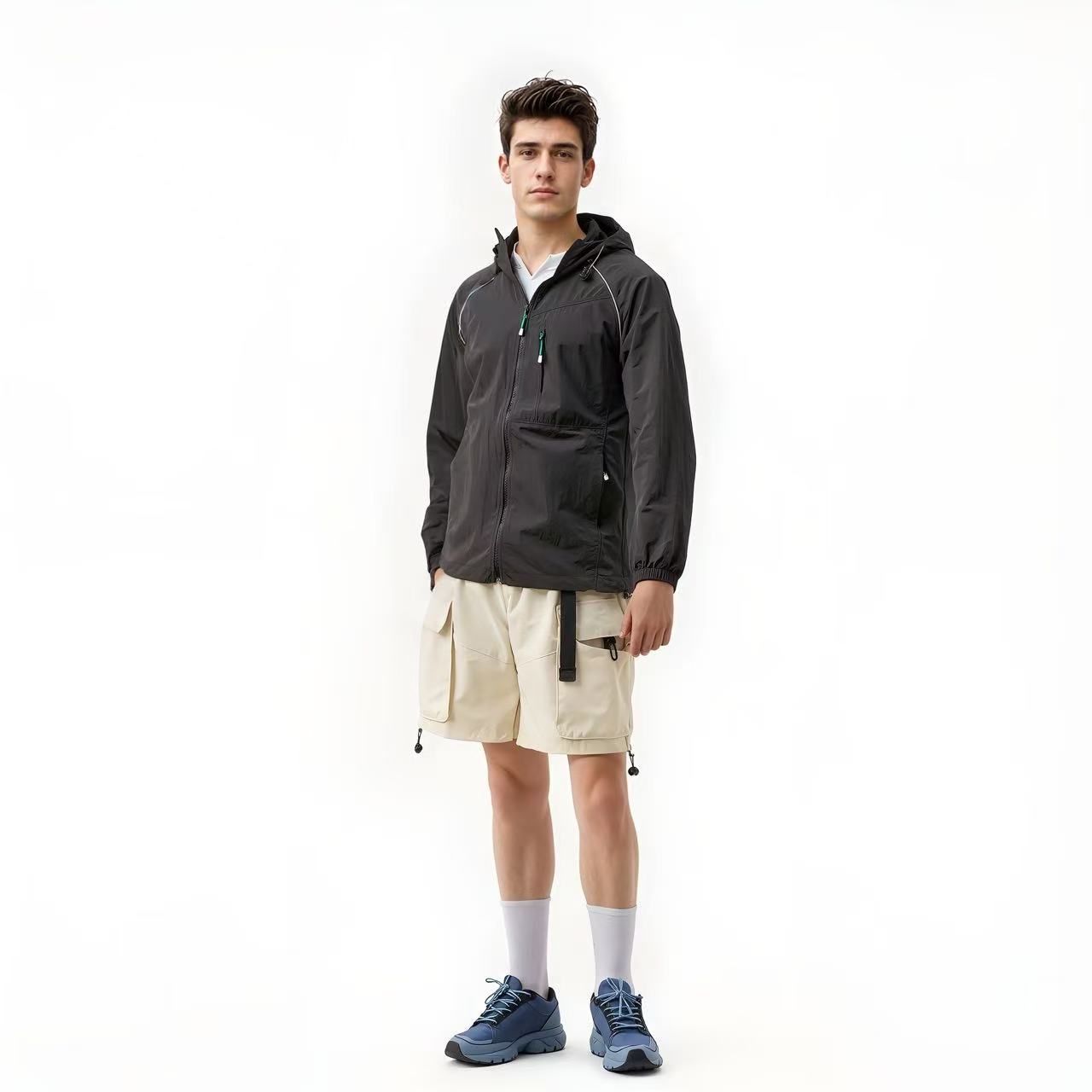 ✔衣服与拉链采用撞色设计,左侧上方的口袋兼具实用性与时尚感。