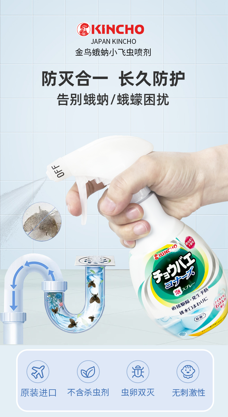 【品牌直发】日本金鸟kincho除虫剂杀虫卫生间厕所下水道灭蛾驱灭小飞虫防虫神器家用