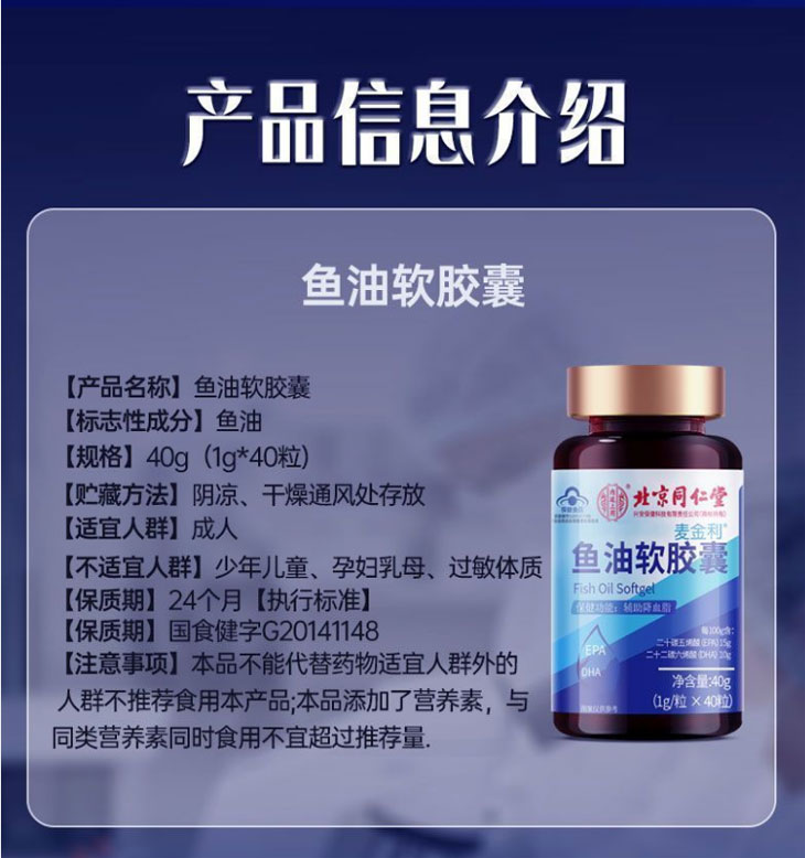 北京同仁堂鱼油软胶囊 深海鱼油不含重金属 饮食不规律运动少鱼油软胶囊