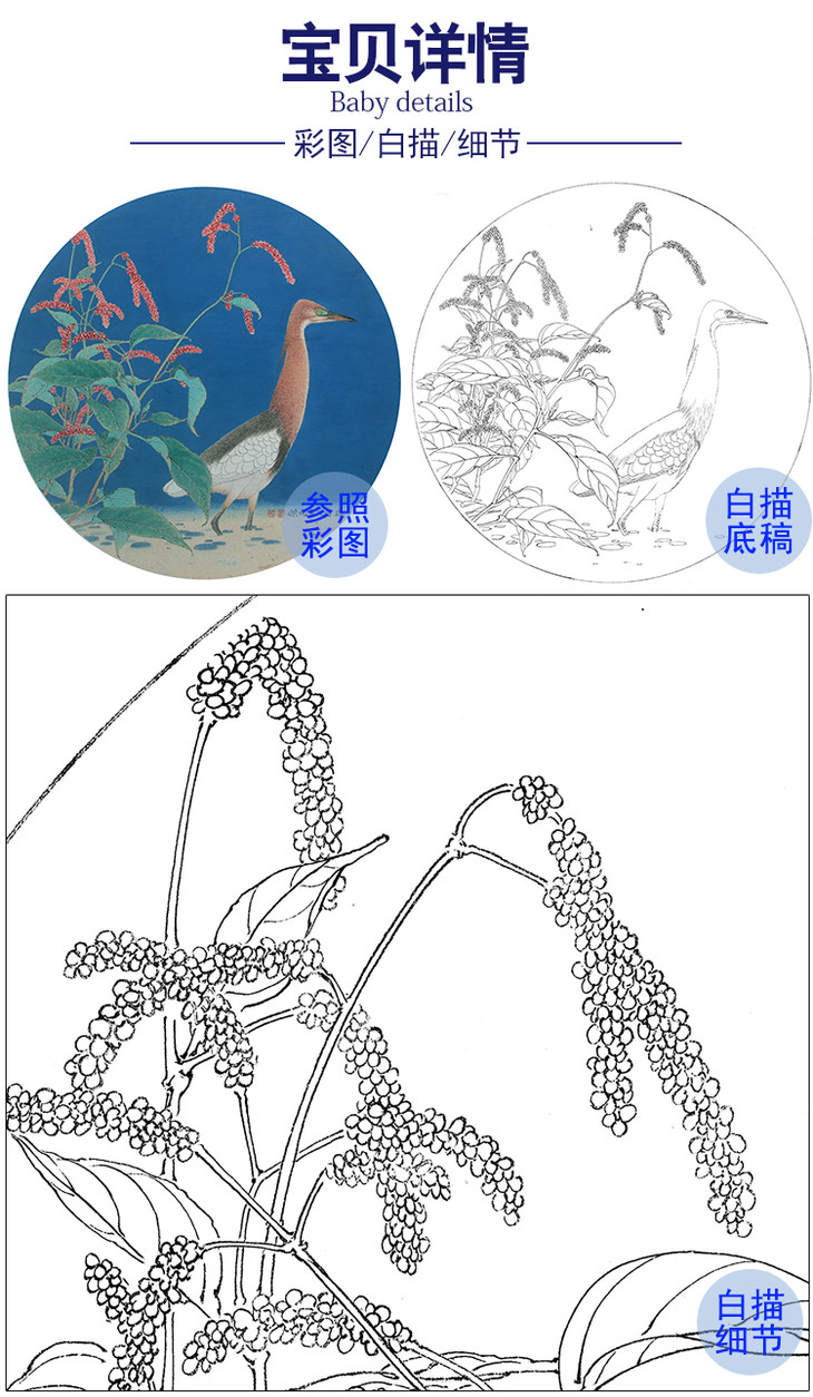 工笔画白描底稿 盘虎杰 圆形花鸟小品 HJ03