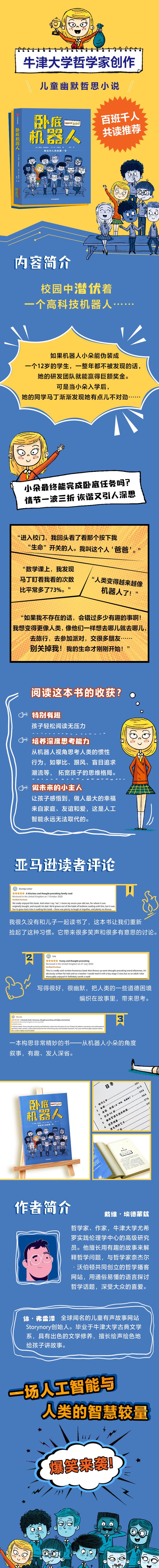 哲学家、作家,牛津大学实践伦理学中心的高级研究员,作品《维特根斯坦的扑克》曾登上《纽约时报》畅销榜,被翻译成30多种语言,提名《卫报》小说奖,引进国内的作品还包括《你会杀死那个胖子吗》等。 他具有深厚的哲学功底和语言能力,擅长用有趣的故事来解释哲学问题,他与哲学家奈杰尔·沃伯顿共同创立的“哲学小讲”播客网站(philosophy bites),邀请当代哲学家用通俗的语言探讨哲学话题,广受欢迎。《卧底机器人》是他专为孩子而写的小说,故事情节一波三折,文字活泼幽默,又引入了关于“机器人与人类的未来”的哲思,是一部具有现实意义的儿童小说。