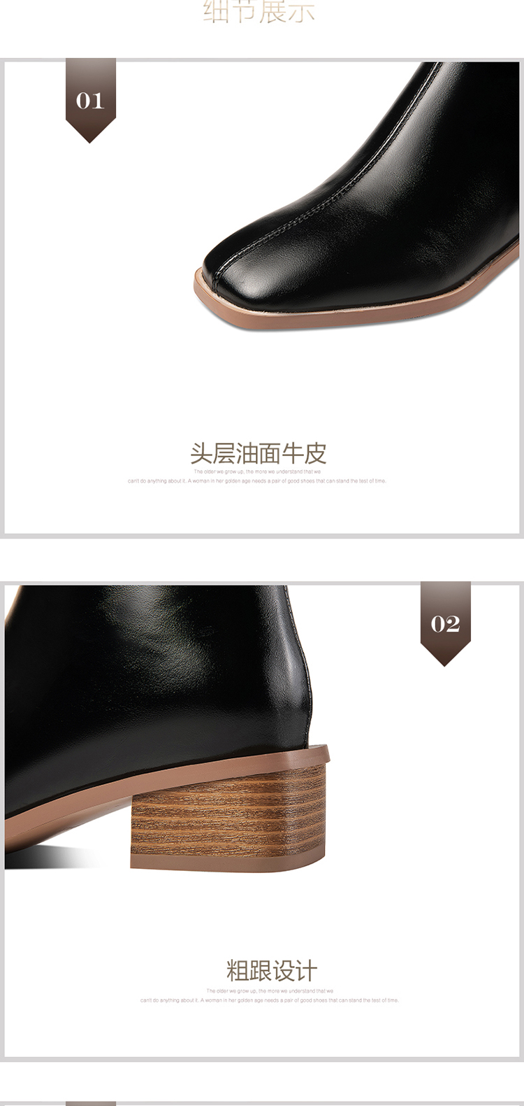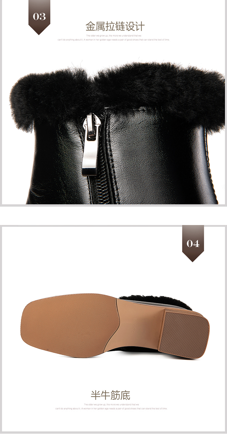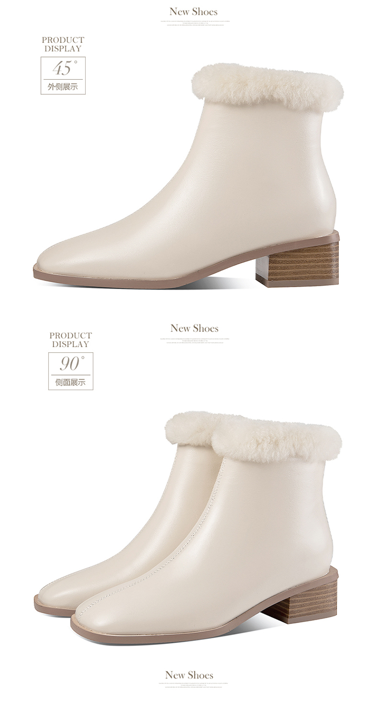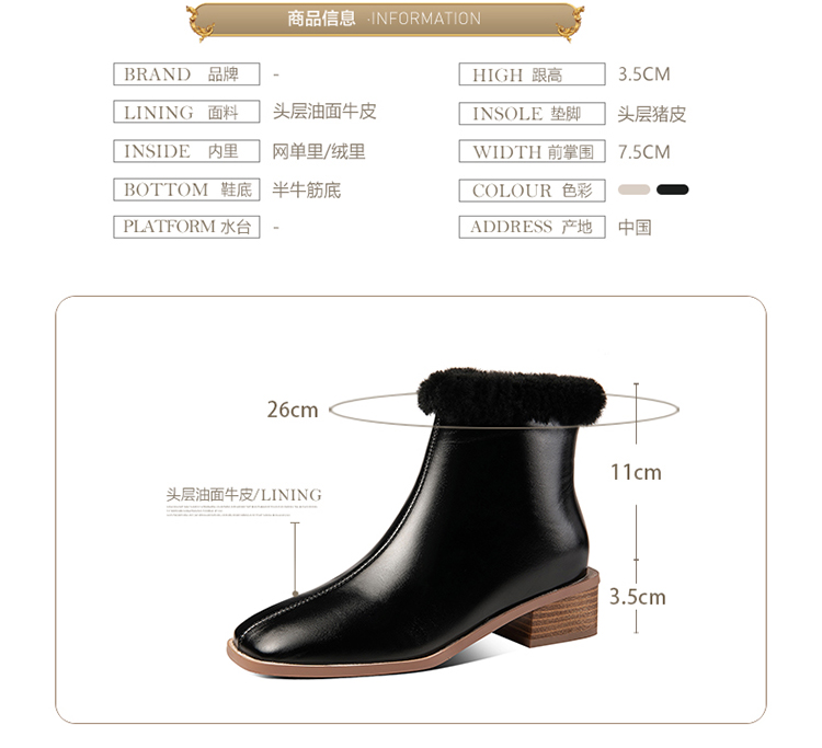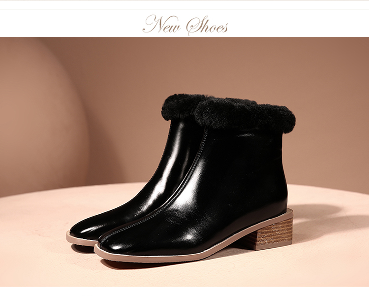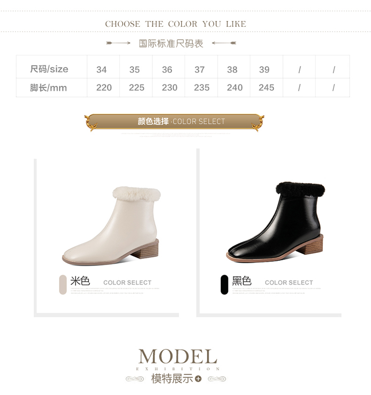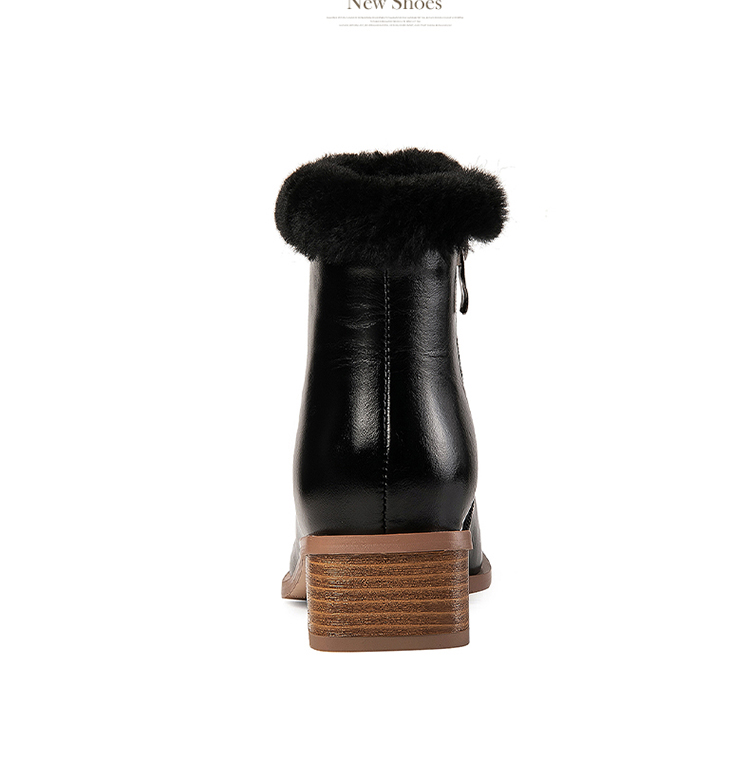 TJXY-XF8175 秋冬新款方头低跟纯色真皮骑士靴侧拉链羊羔毛短筒舒适百搭中跟靴