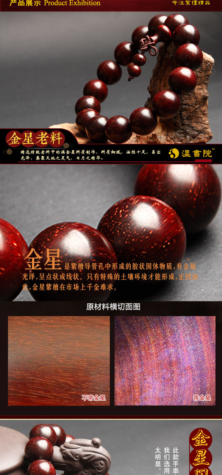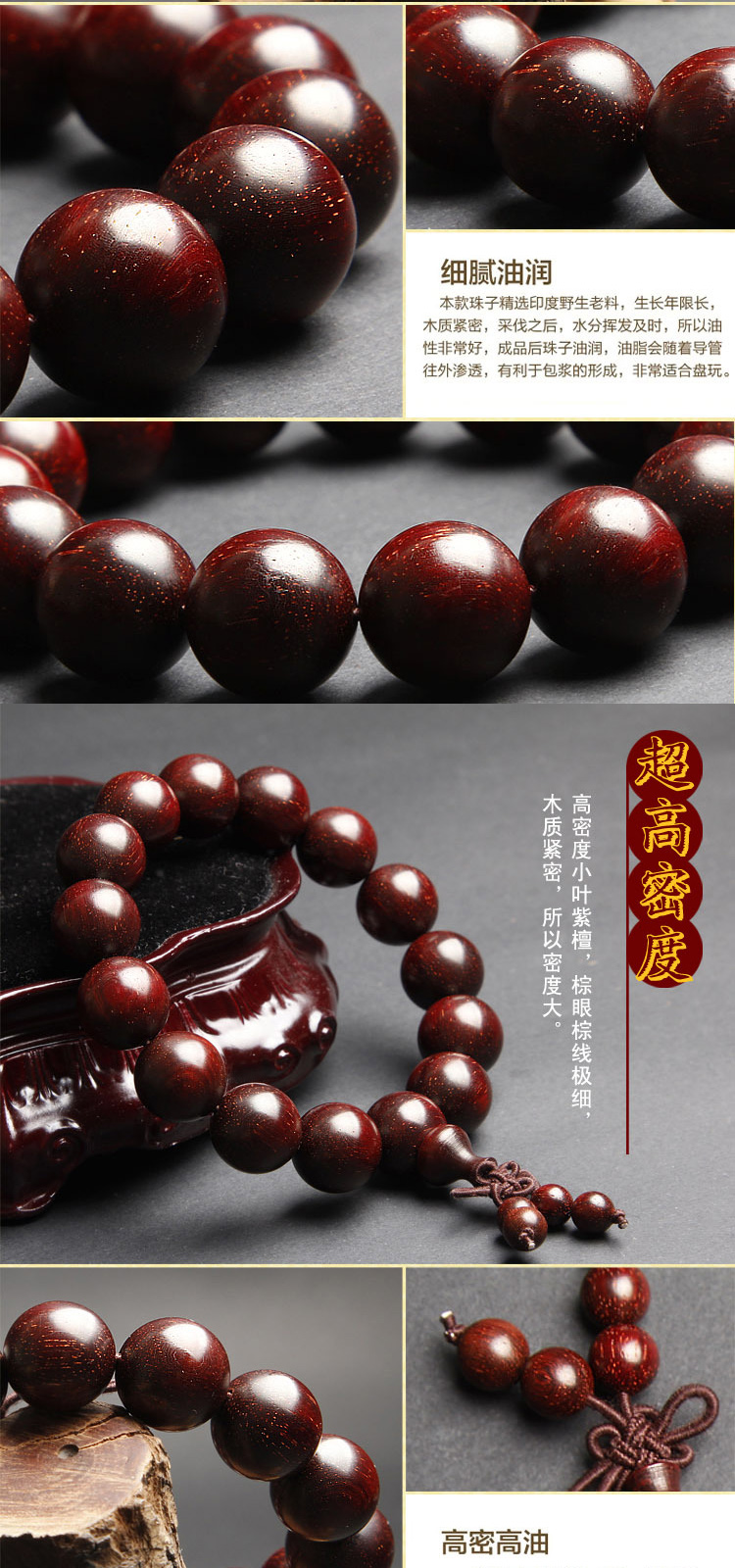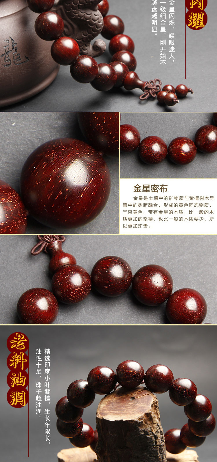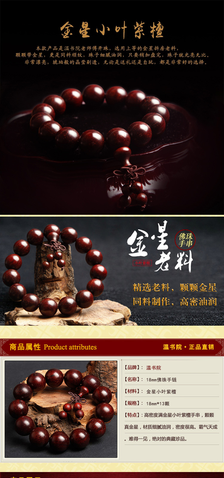 温书院 小叶紫檀【带金星】盘玩男士手链18mm·手链*1条