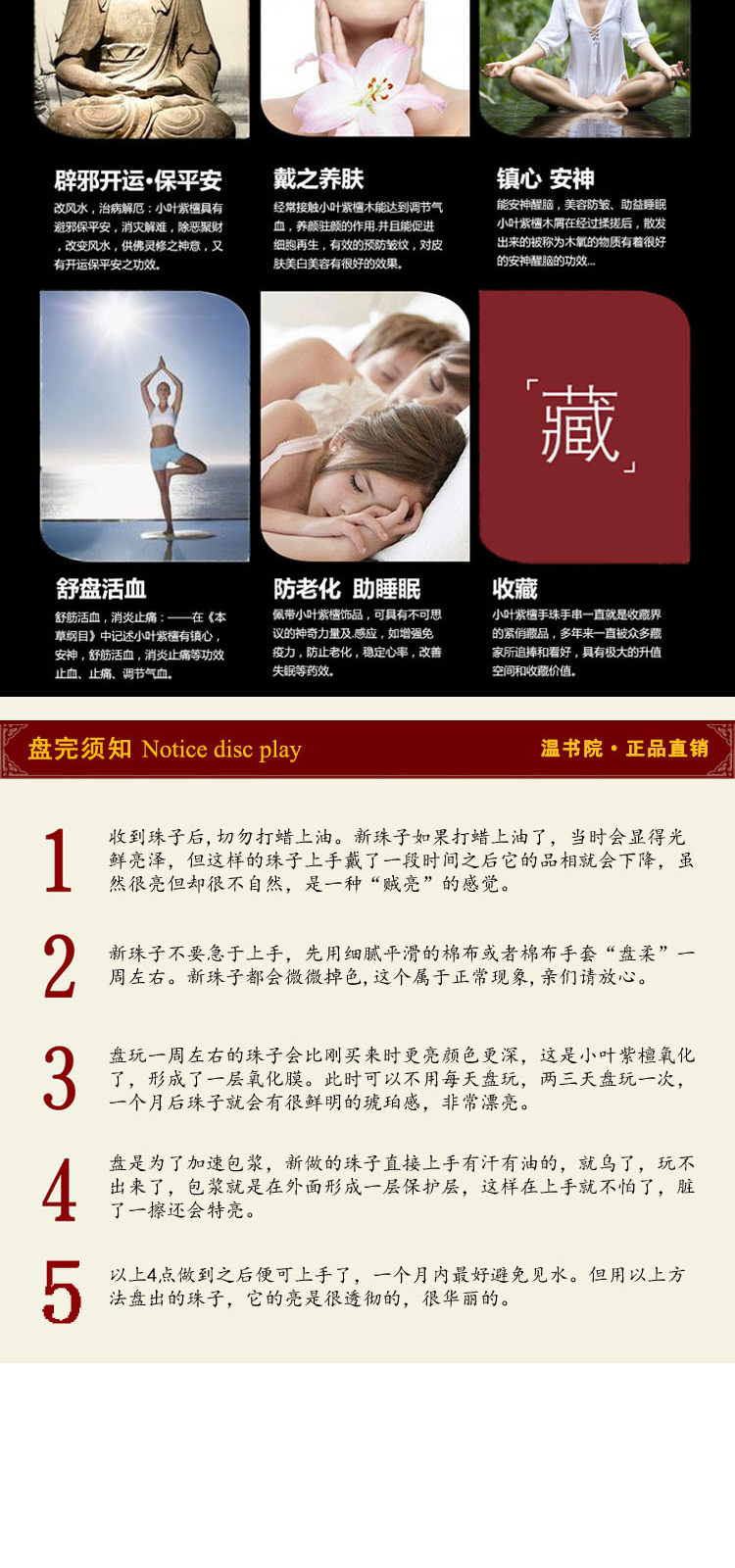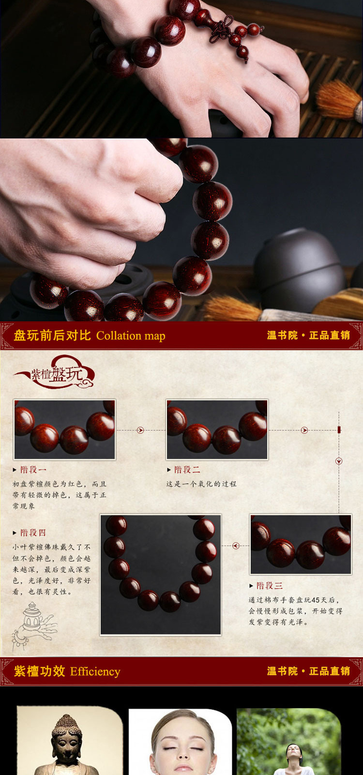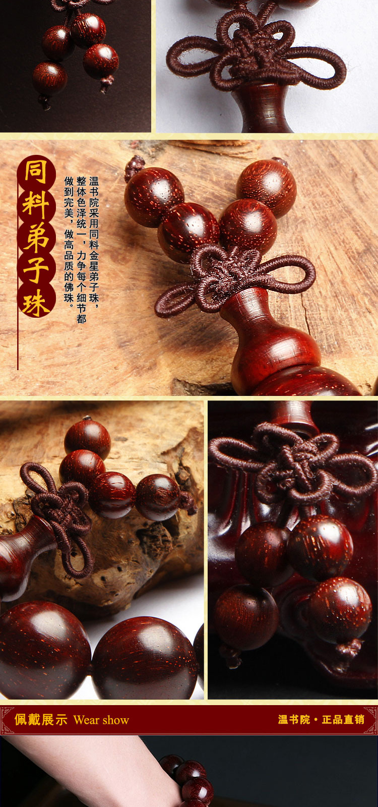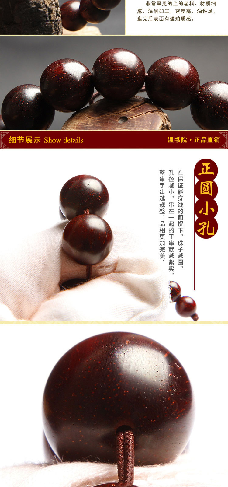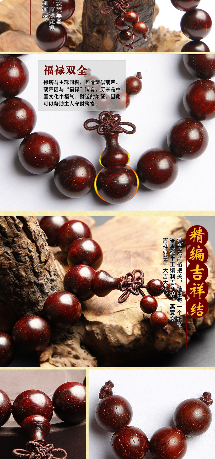 温书院 小叶紫檀【带金星】盘玩男士手链18mm·手链*1条