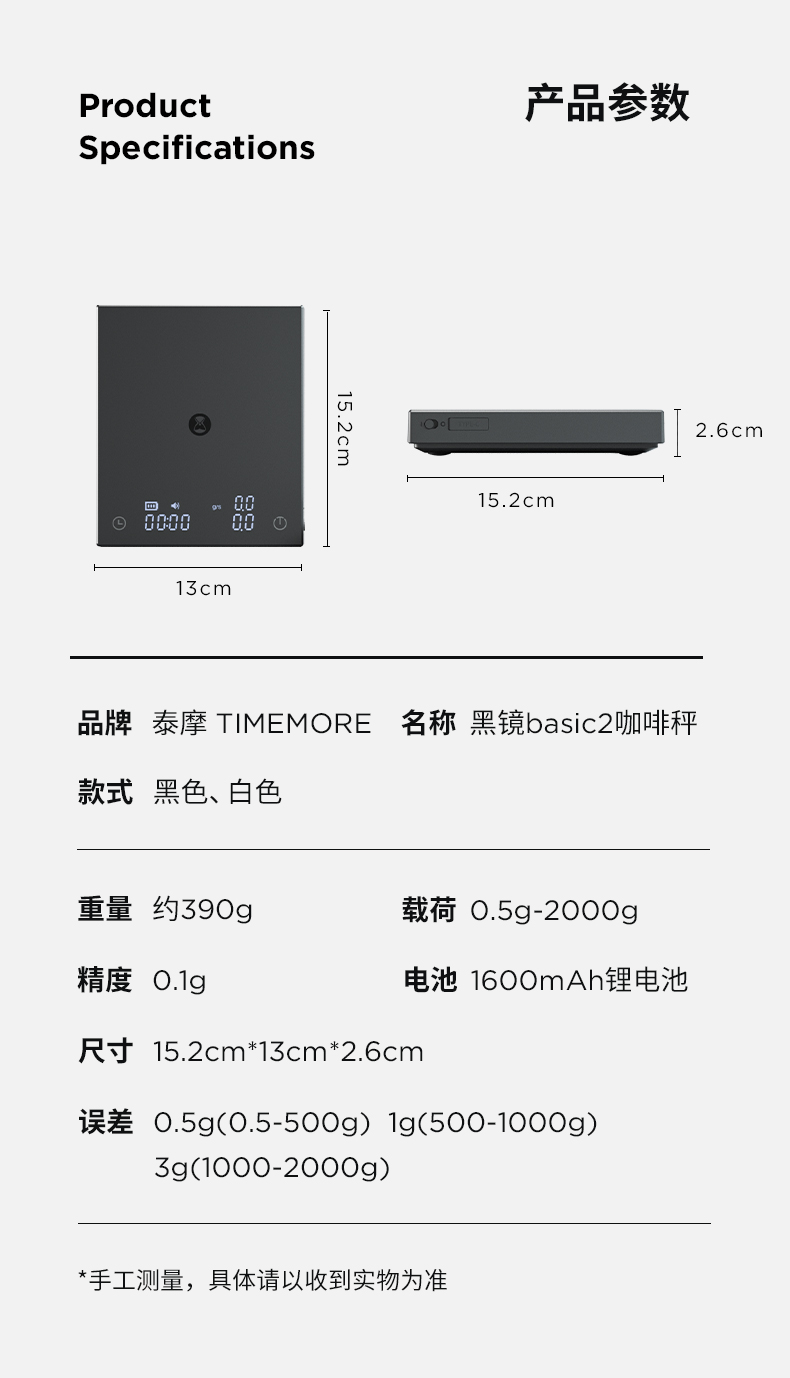 【整箱批发】泰摩 黑镜DUO双秤咖啡电子秤-黑色