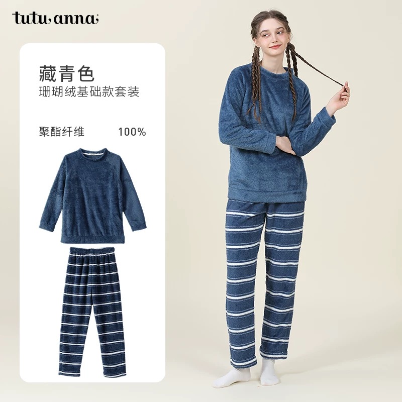 Tutu Anna秋冬珊瑚绒加绒加厚保暖可外穿圆领睡衣