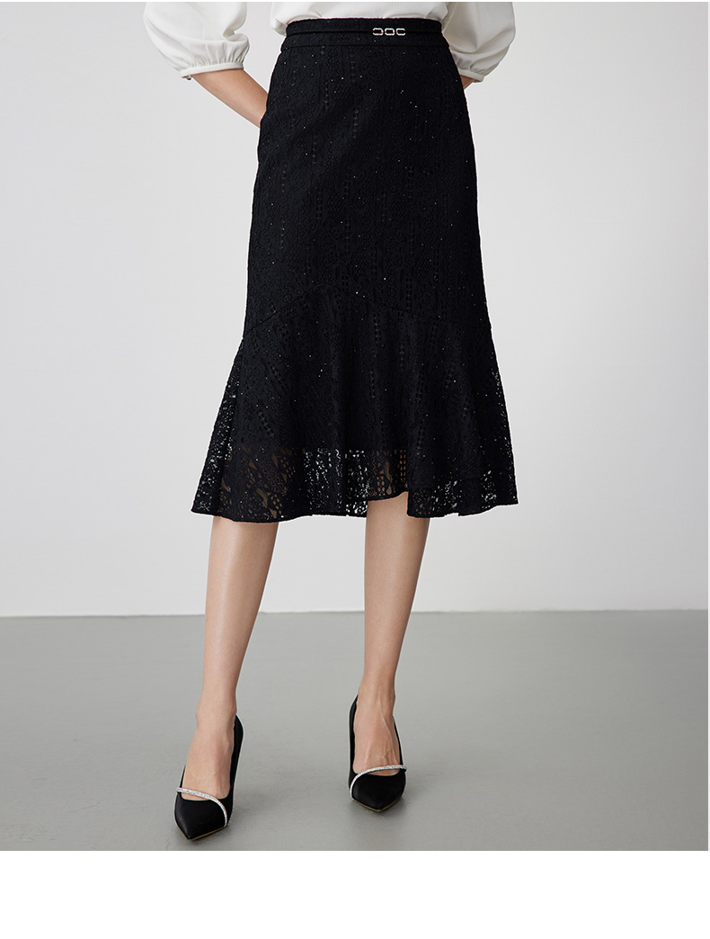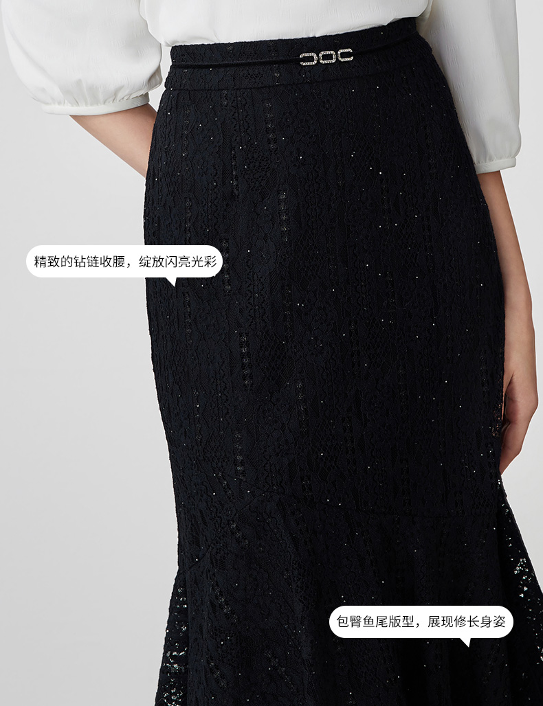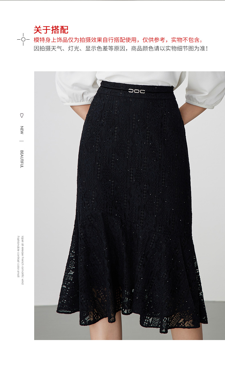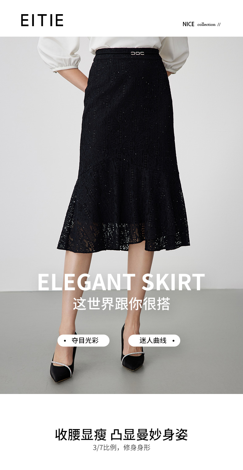 EITIE爱特爱夏季新款时尚精致优雅法式高腰蕾丝半身裙B2406302