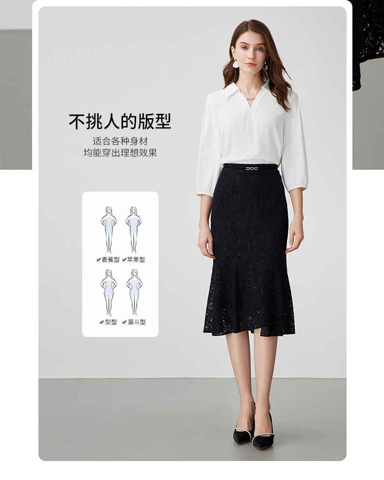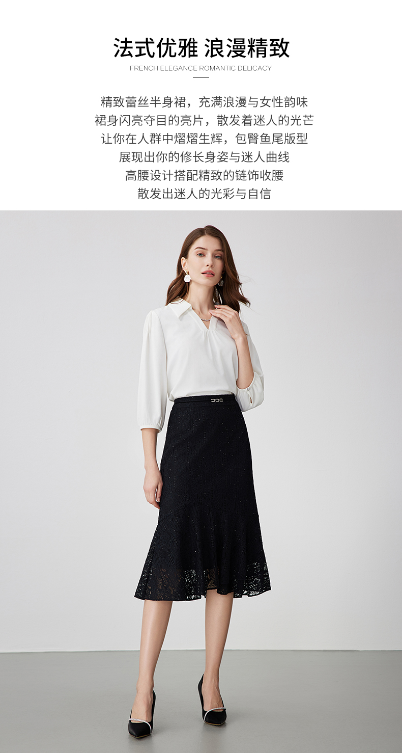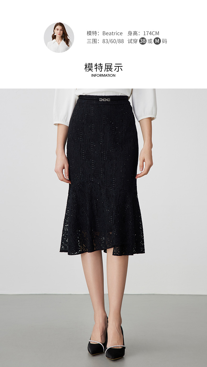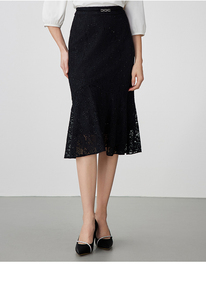 EITIE爱特爱夏季新款时尚精致优雅法式高腰蕾丝半身裙B2406302