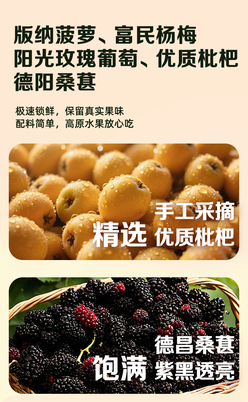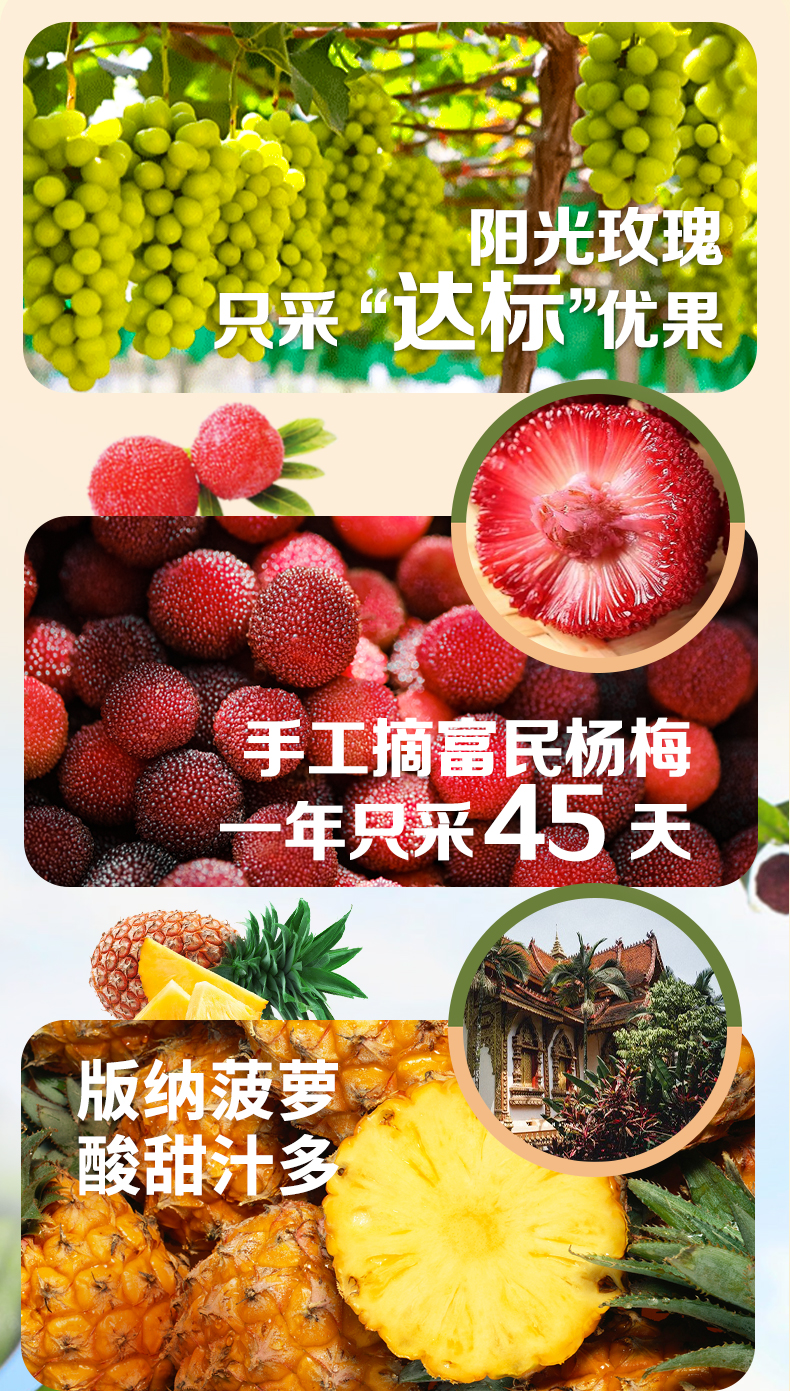 【夏日果缤纷】5种口味(300g阳光玫瑰+300g枇杷+300g桑葚+390g菠萝+400g杨梅)#润