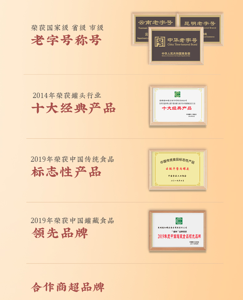 - 昆明德和罐头厂是中国最早开始生产制造罐头的企业之一,至今已有九十八年的悠久历史,现已形成以罐头食品为主,腌腊制品、糕点月饼等为辅的云南省规模最大和最具影响力综合食品制造企业,奠定了云南罐头行业的基石。