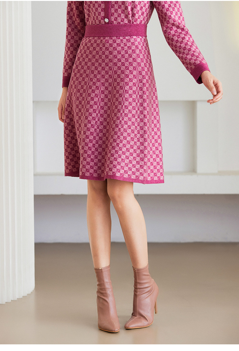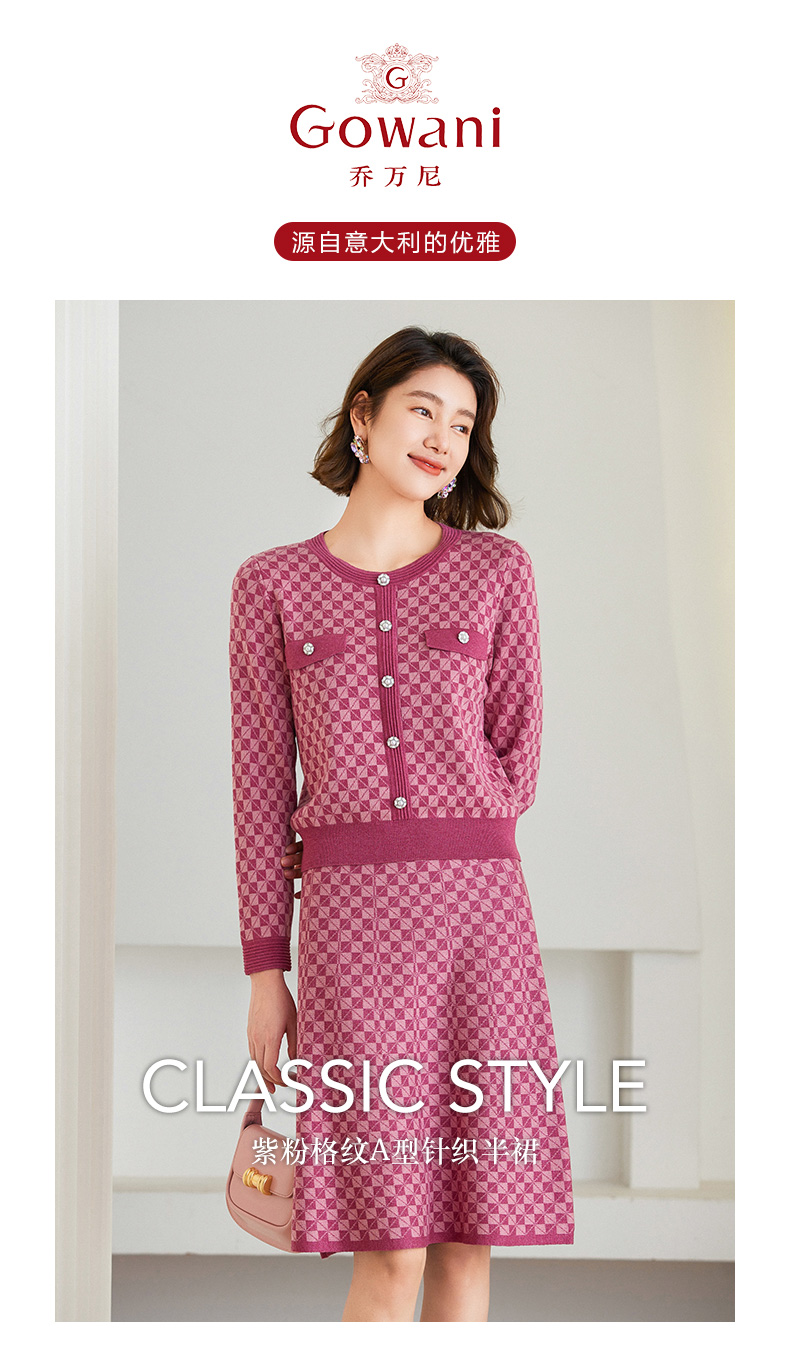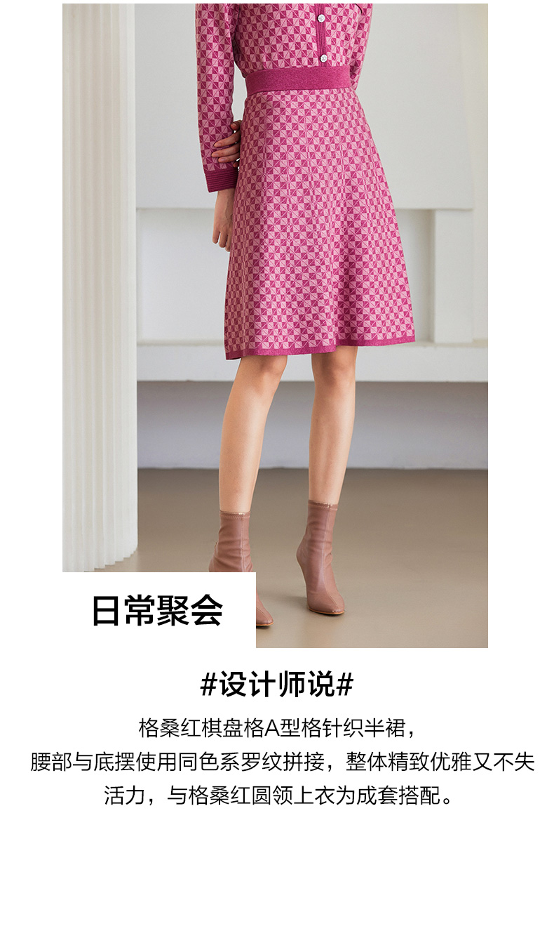 乔万尼半身裙秋冬小香风针织棋盘格a字版ET4M942