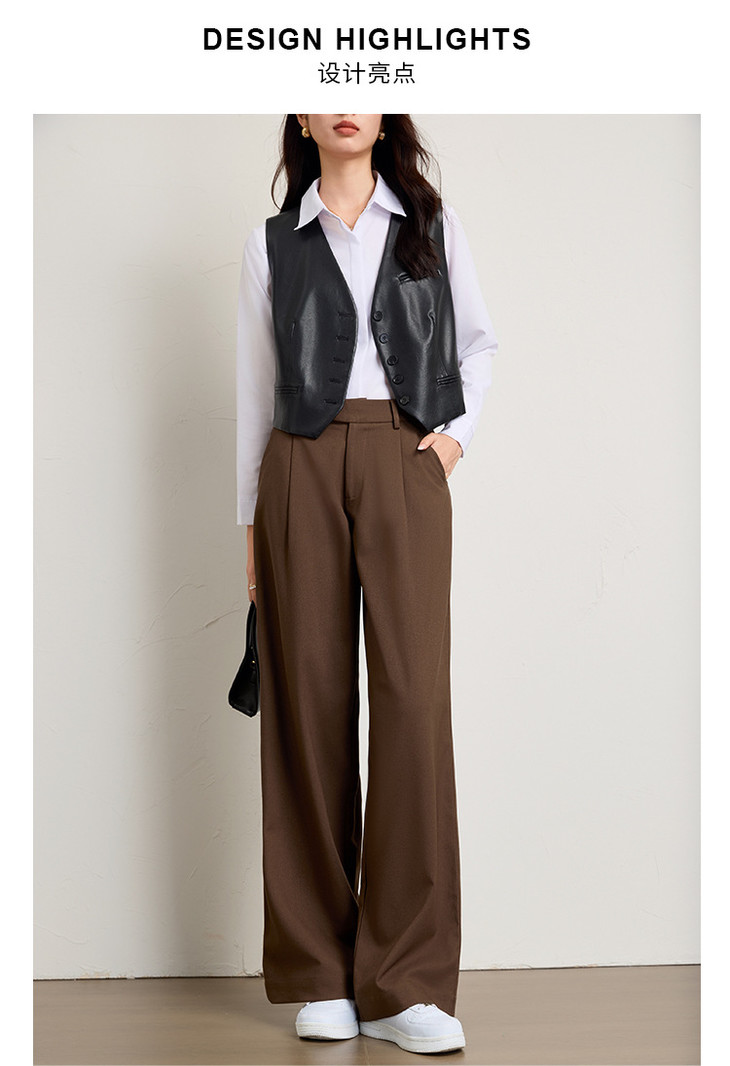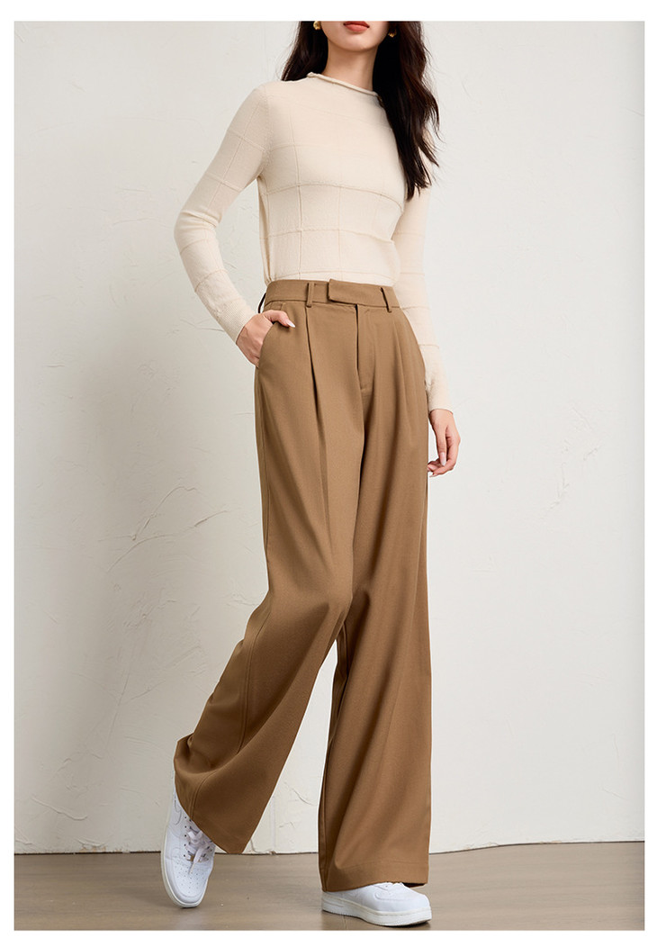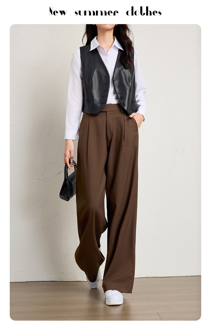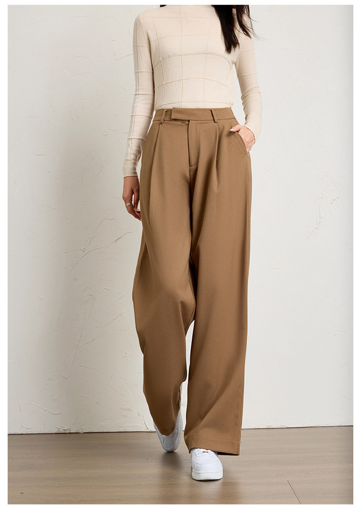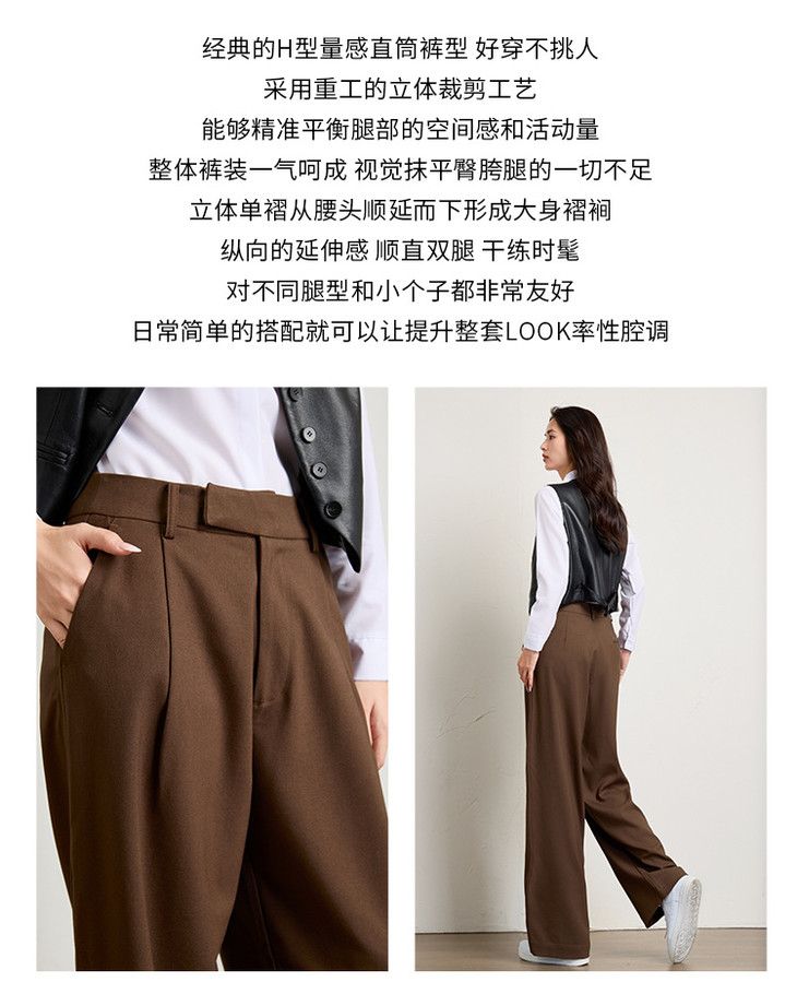 西装裤坠感老钱风,高腰提臀直筒阔腿裤休闲裤KB-250210