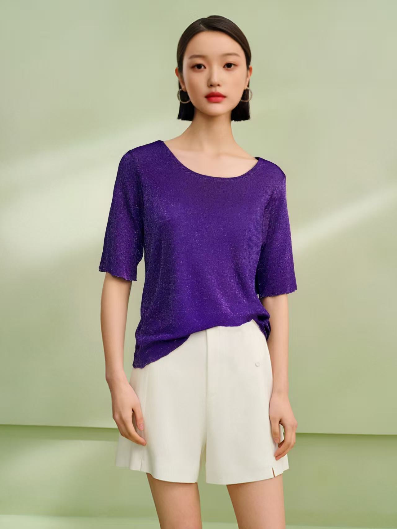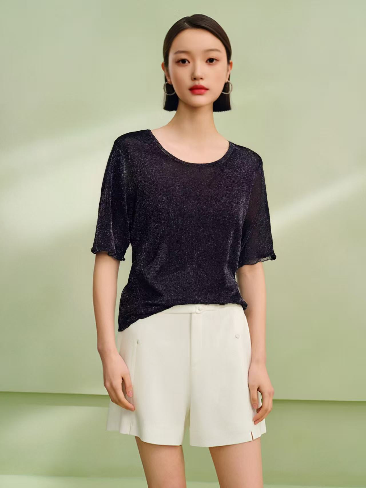 超值购【诗铭洛可】0535 针织短袖星空细闪上衣A15-1