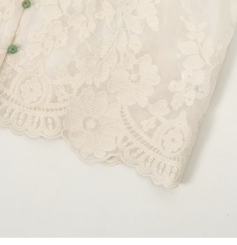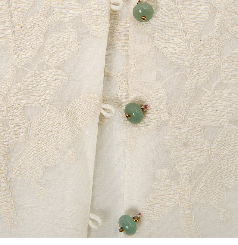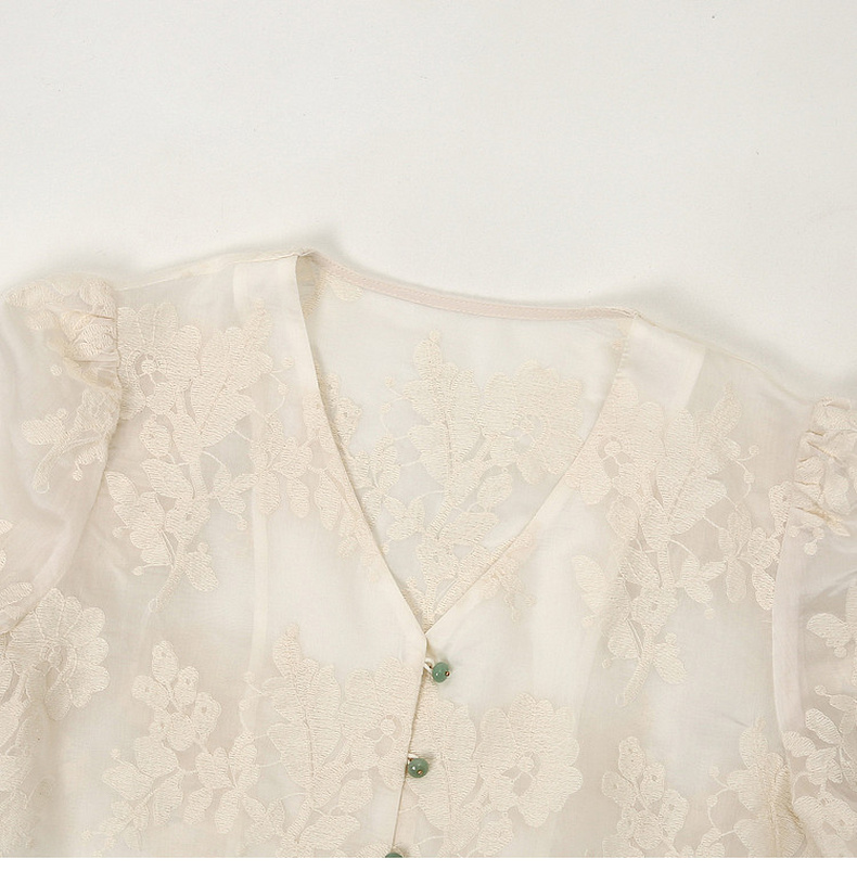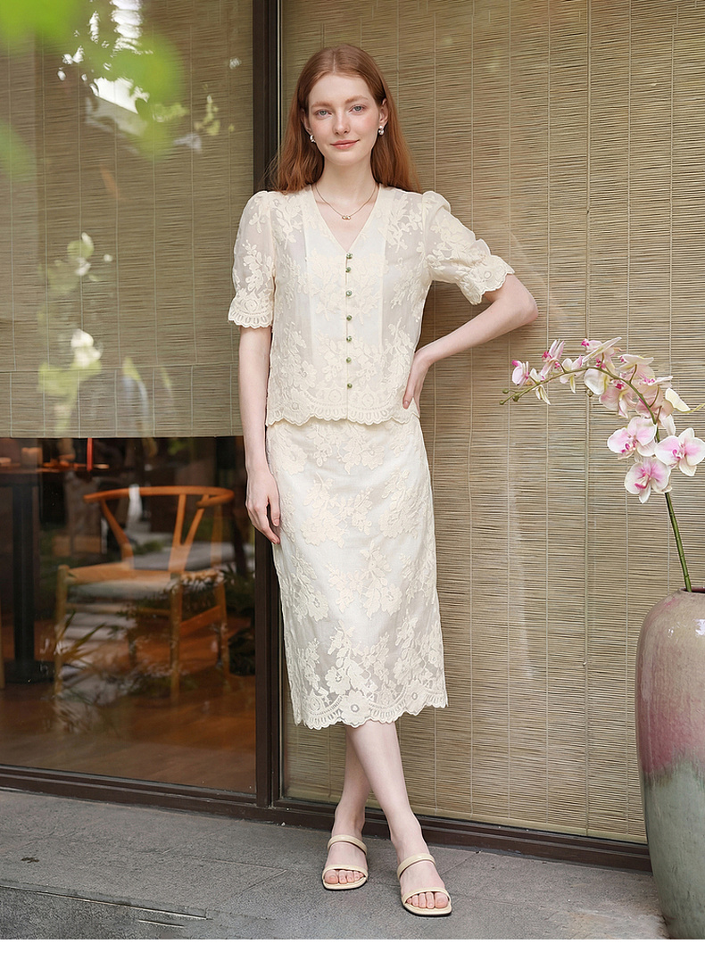 天猫同步【蕾丝两件套】拉夏贝尔/La Chapelle法式V领排扣刺绣短袖小衫半身裙老钱松弛感新中式两件套