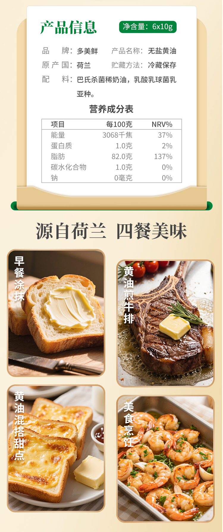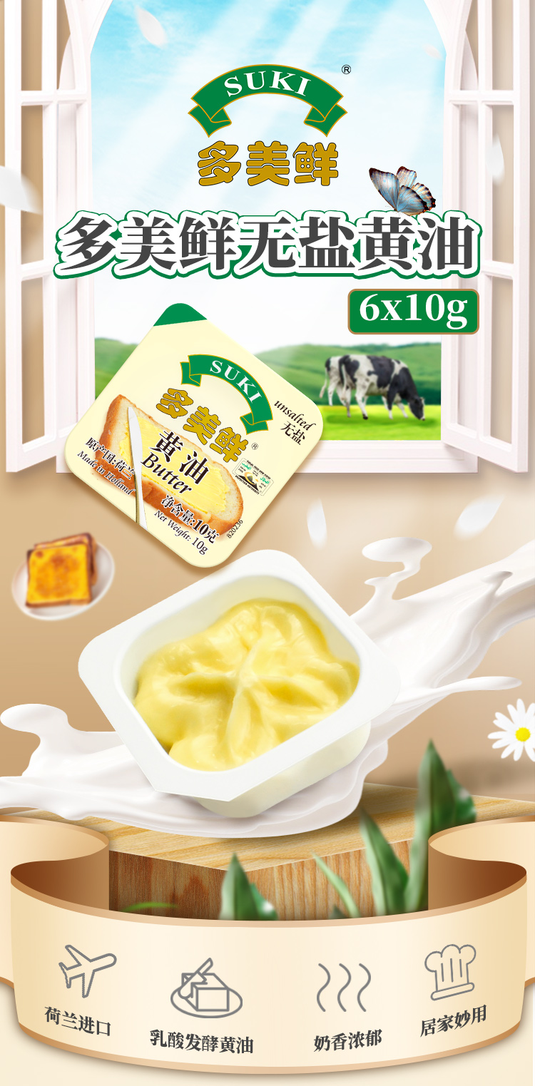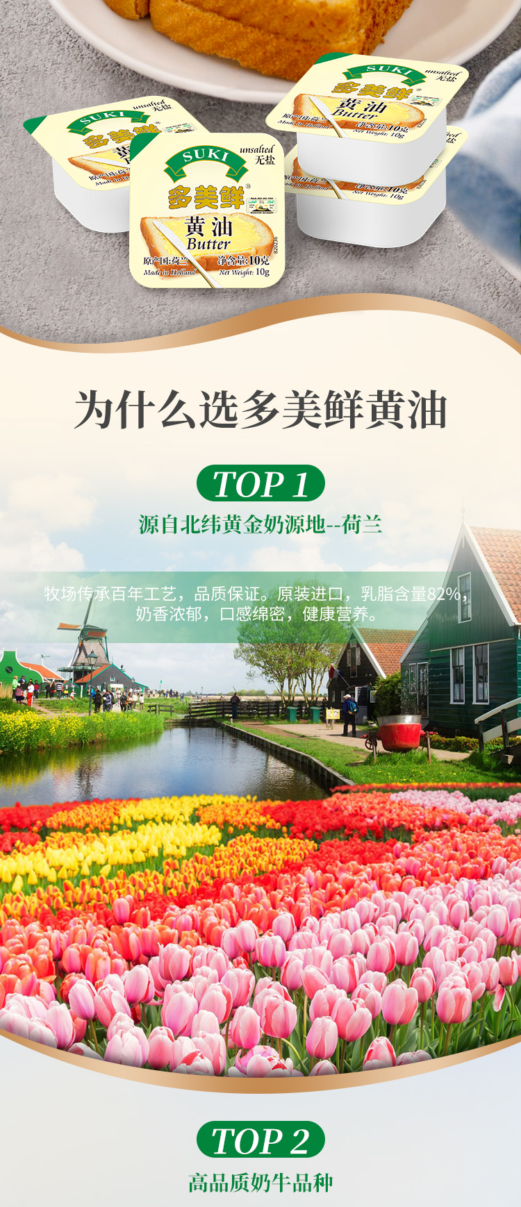【升级10g】多美鲜黄油 荷兰原装进口 无盐黄油6粒*10g 香味独特 口感细腻GF【保质期截止2026年7月】
