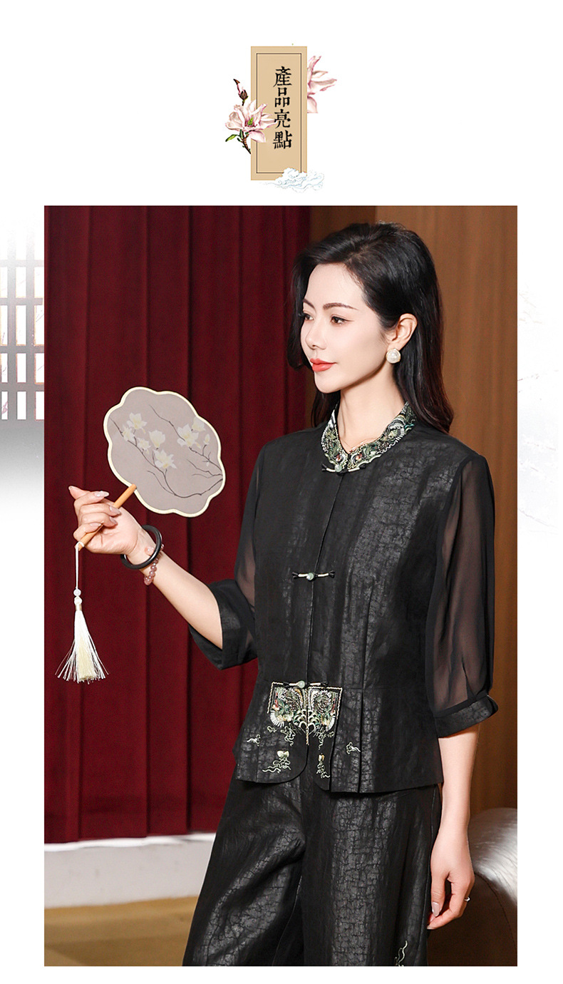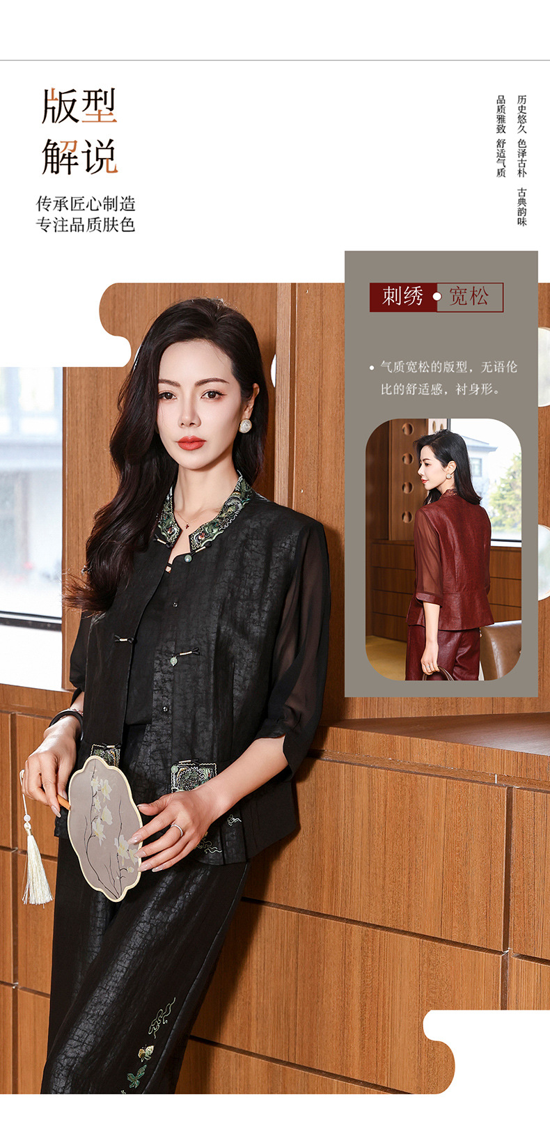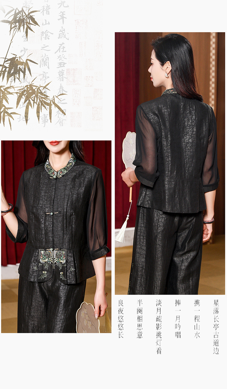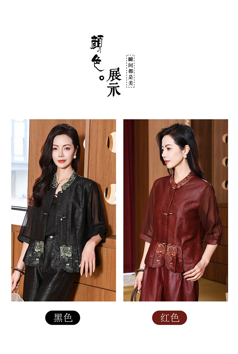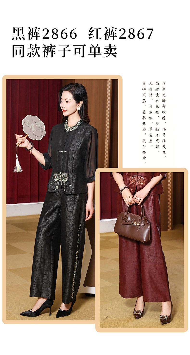 KQ-221851+黑裤221866或红裤221867春夏国风新中式绣暗纹提花香云纱刺绣显瘦复古盘扣两件套装