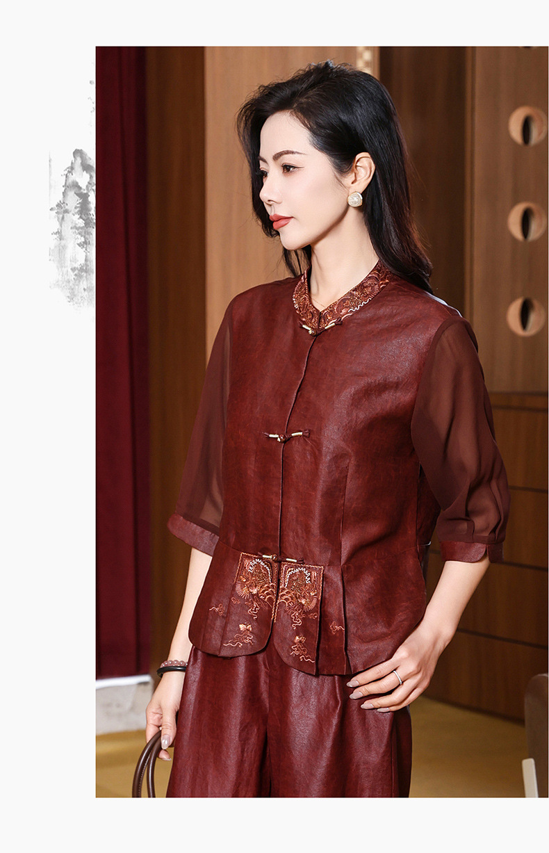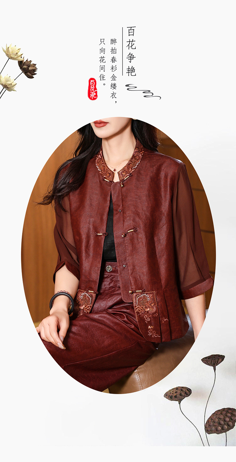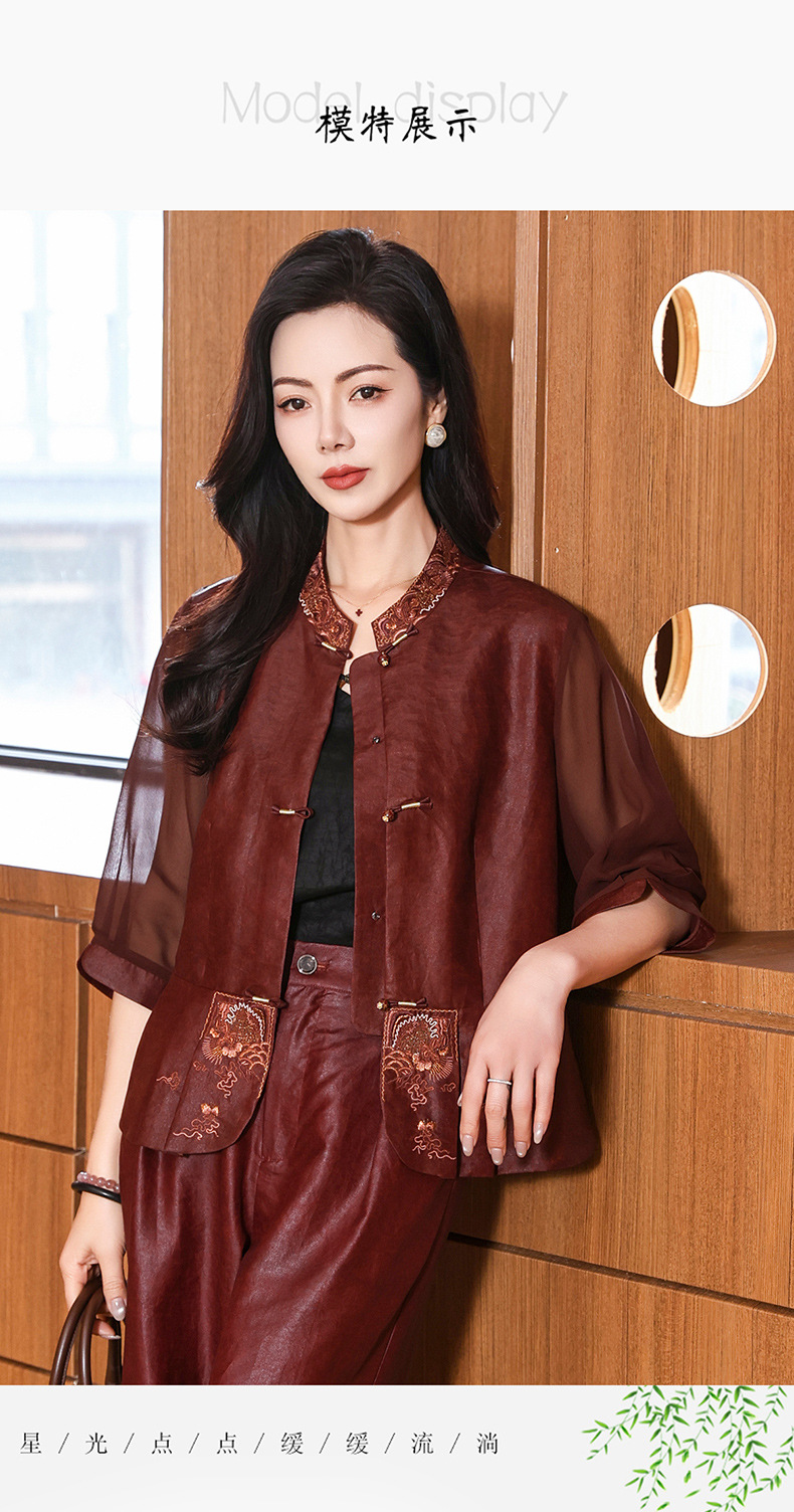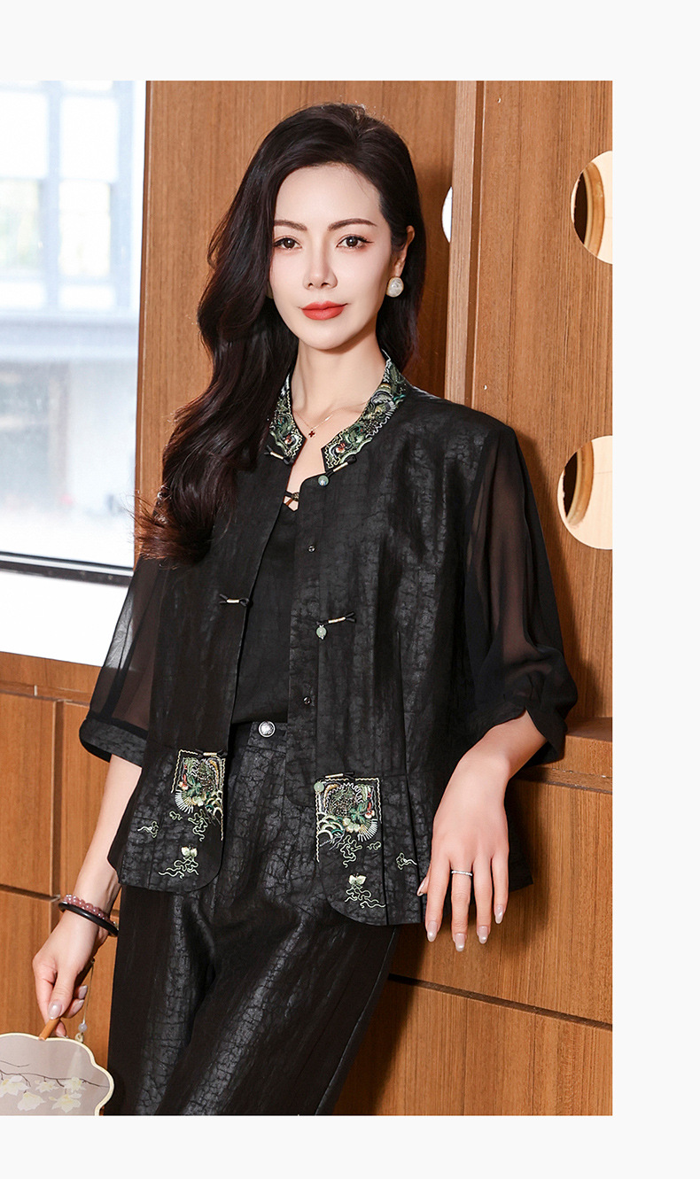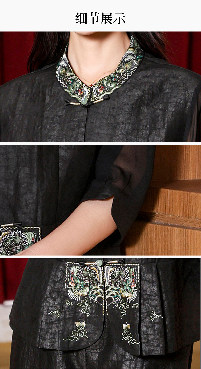 KQ-221851+黑裤221866或红裤221867春夏国风新中式绣暗纹提花香云纱刺绣显瘦复古盘扣两件套装