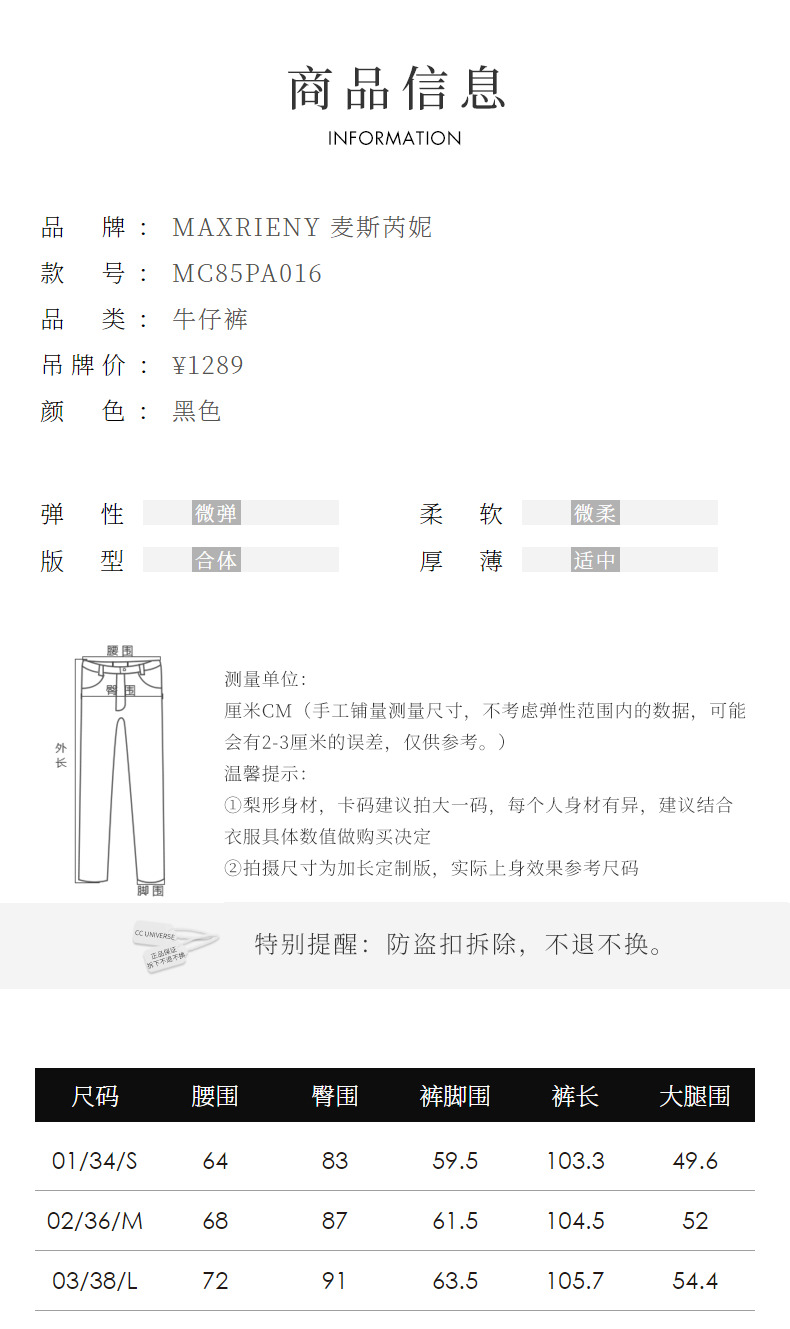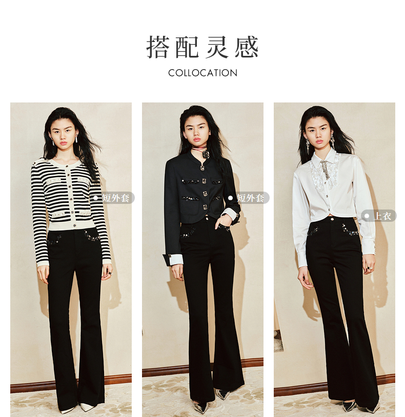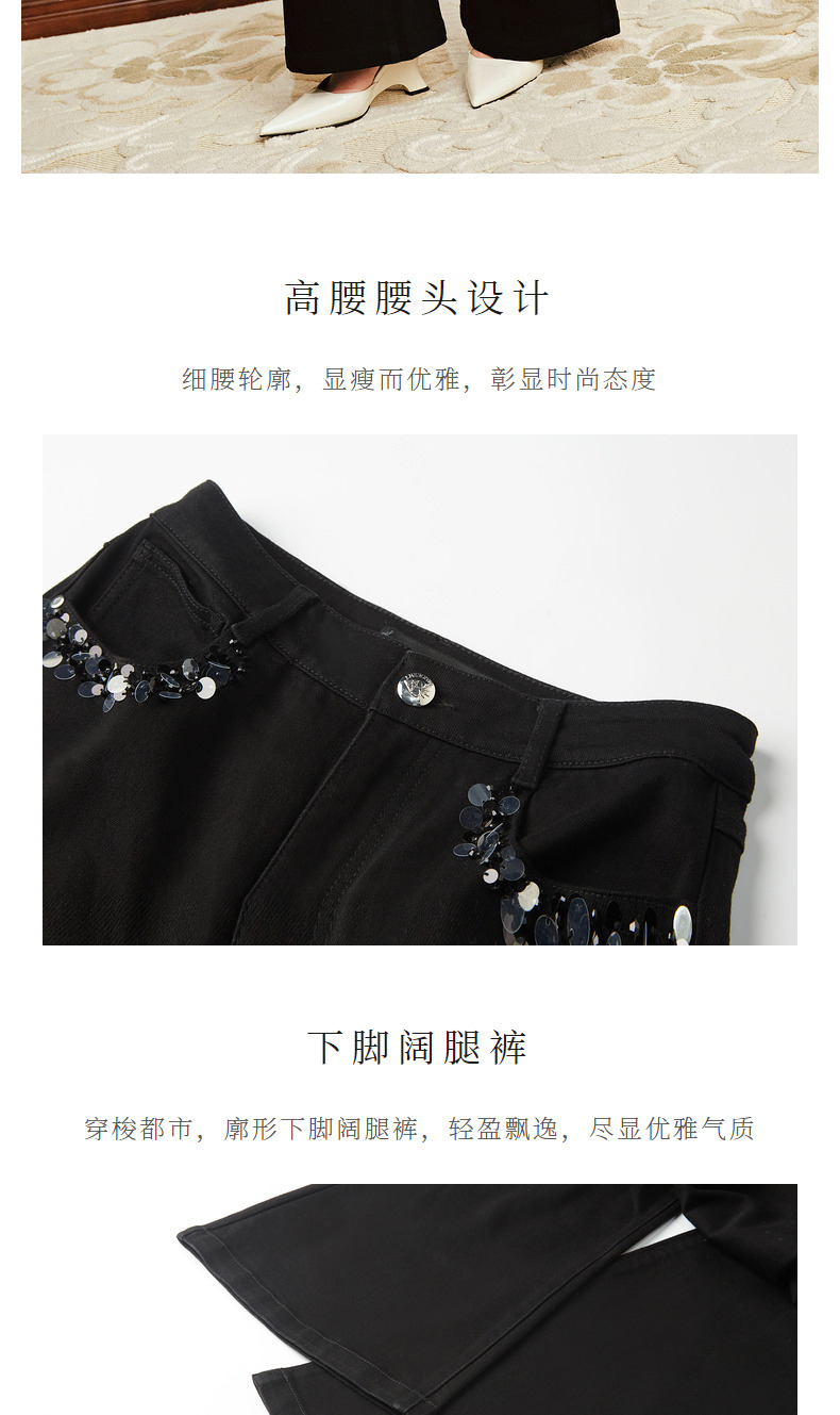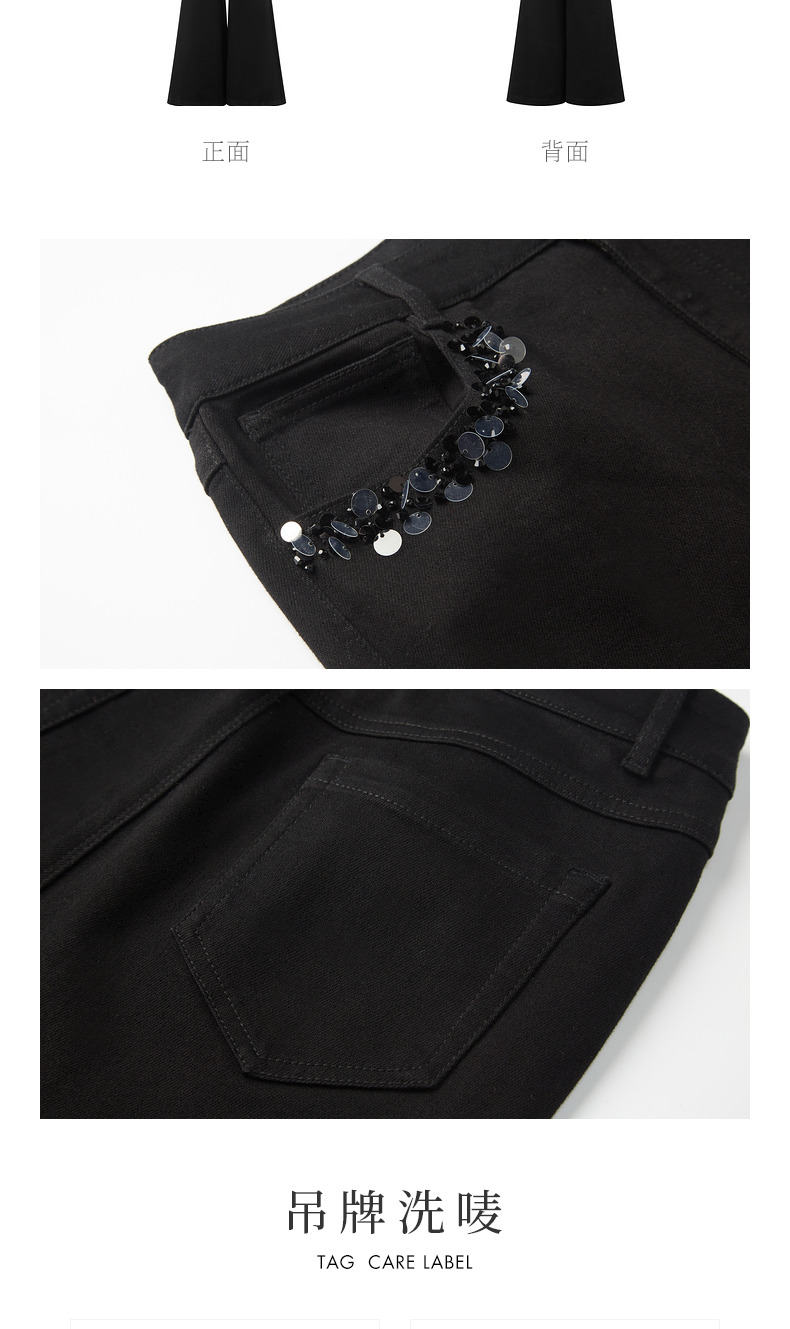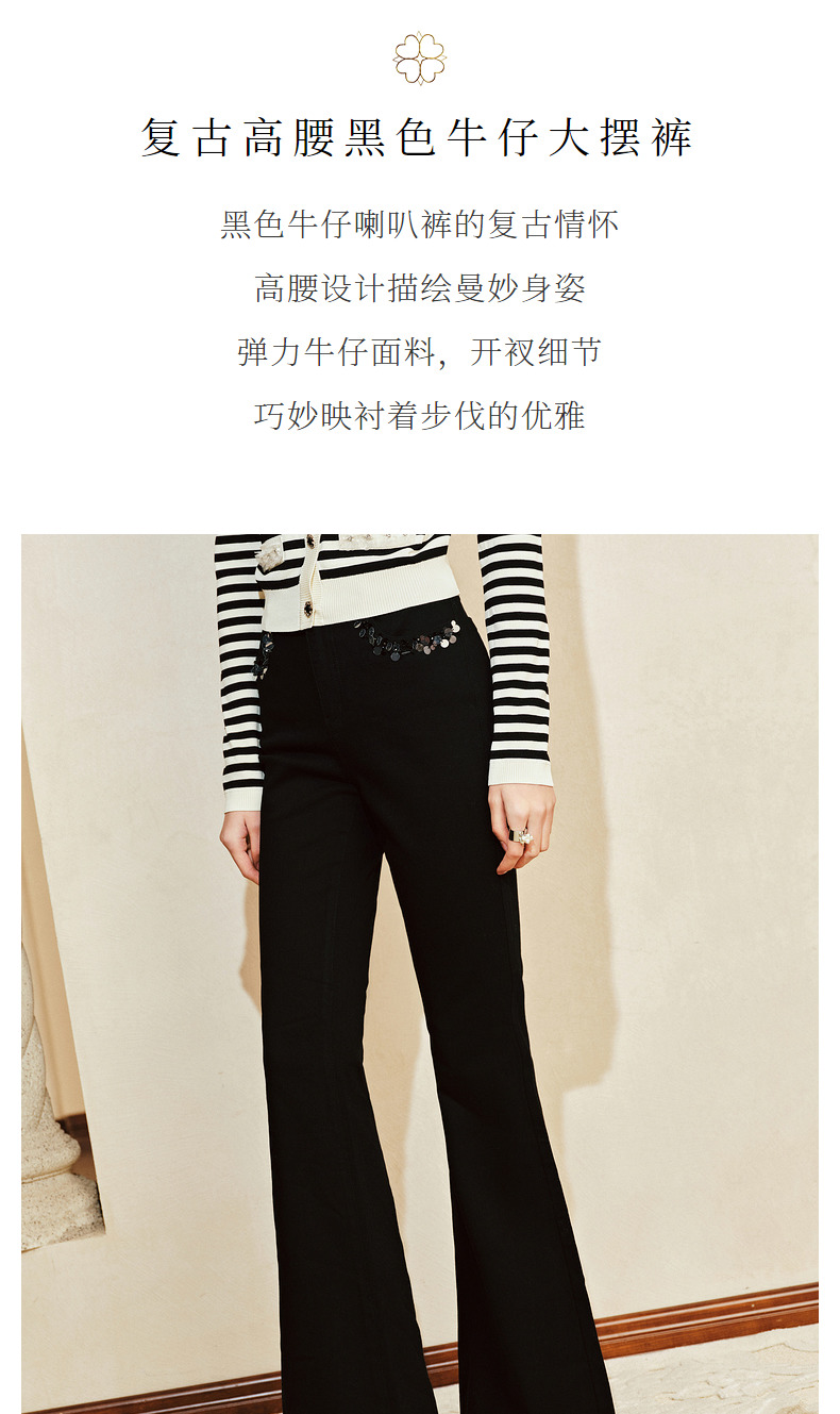 【商场同款-摩登女爵】MAXRIENY*休闲裤子高腰黑色牛仔喇叭裤(货号:MC85PA016)