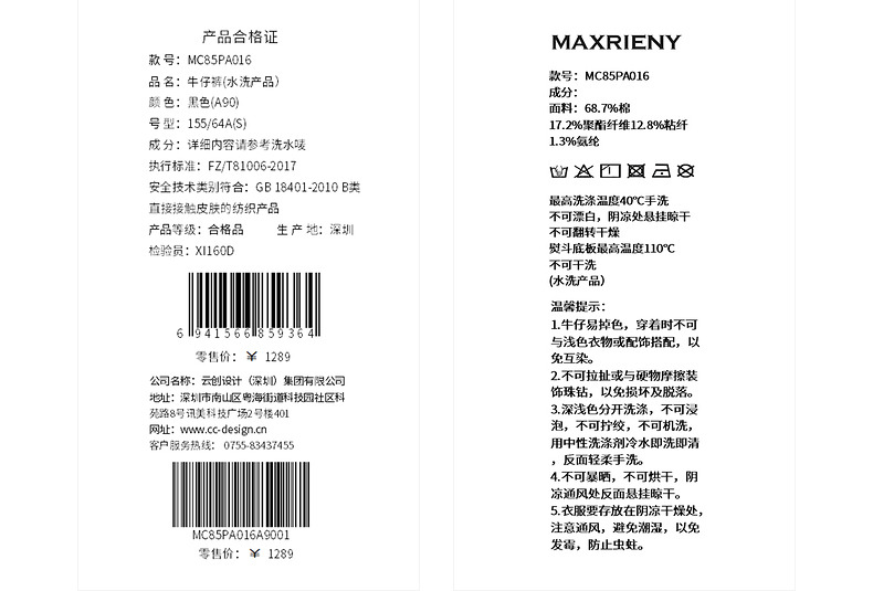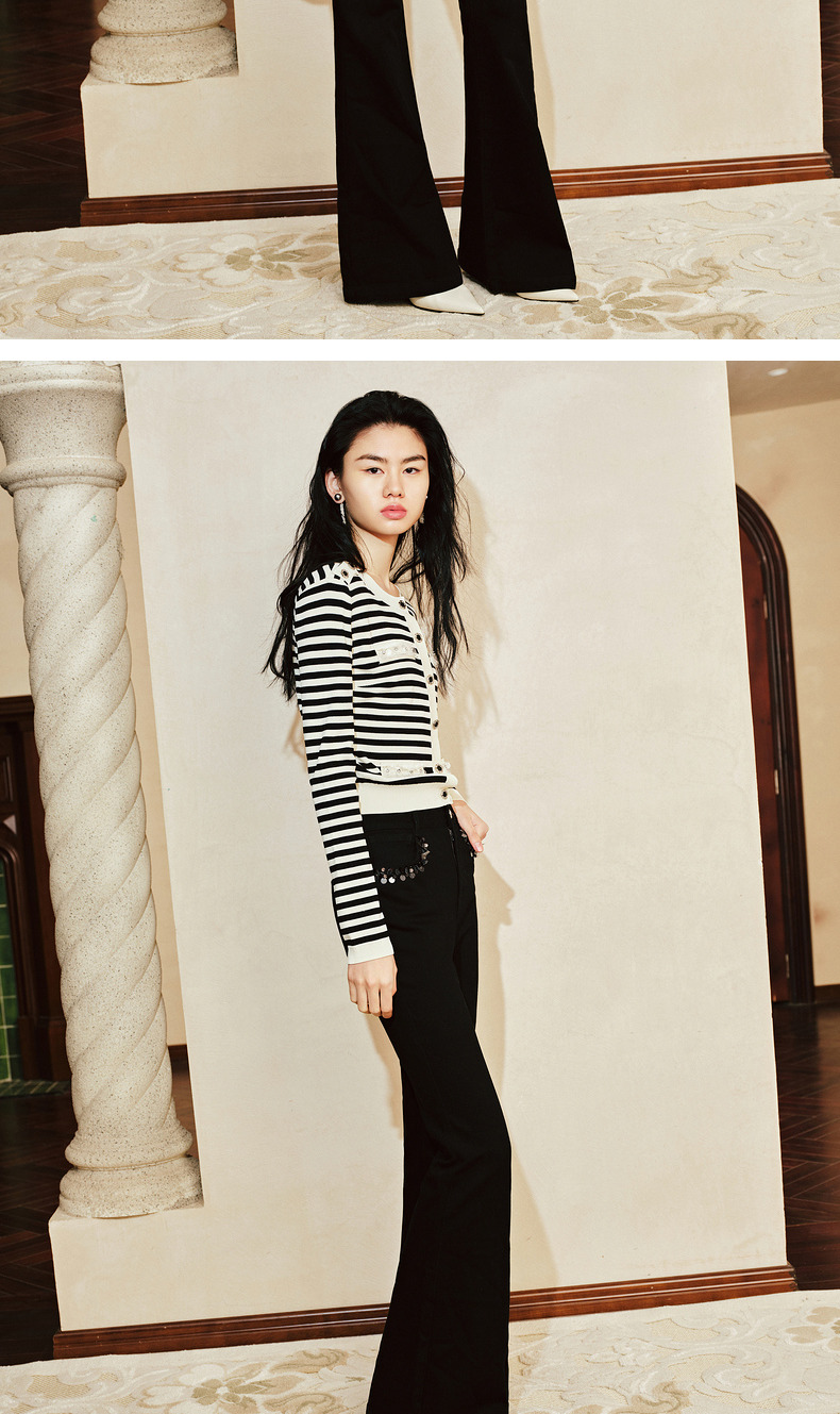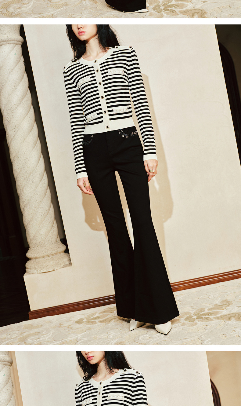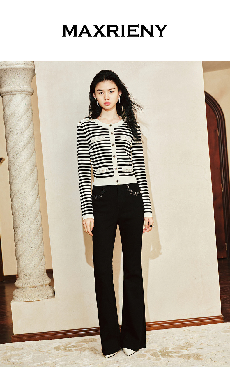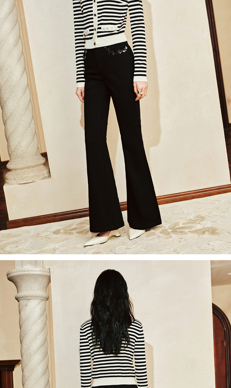 【商场同款-摩登女爵】MAXRIENY*休闲裤子高腰黑色牛仔喇叭裤(货号:MC85PA016)