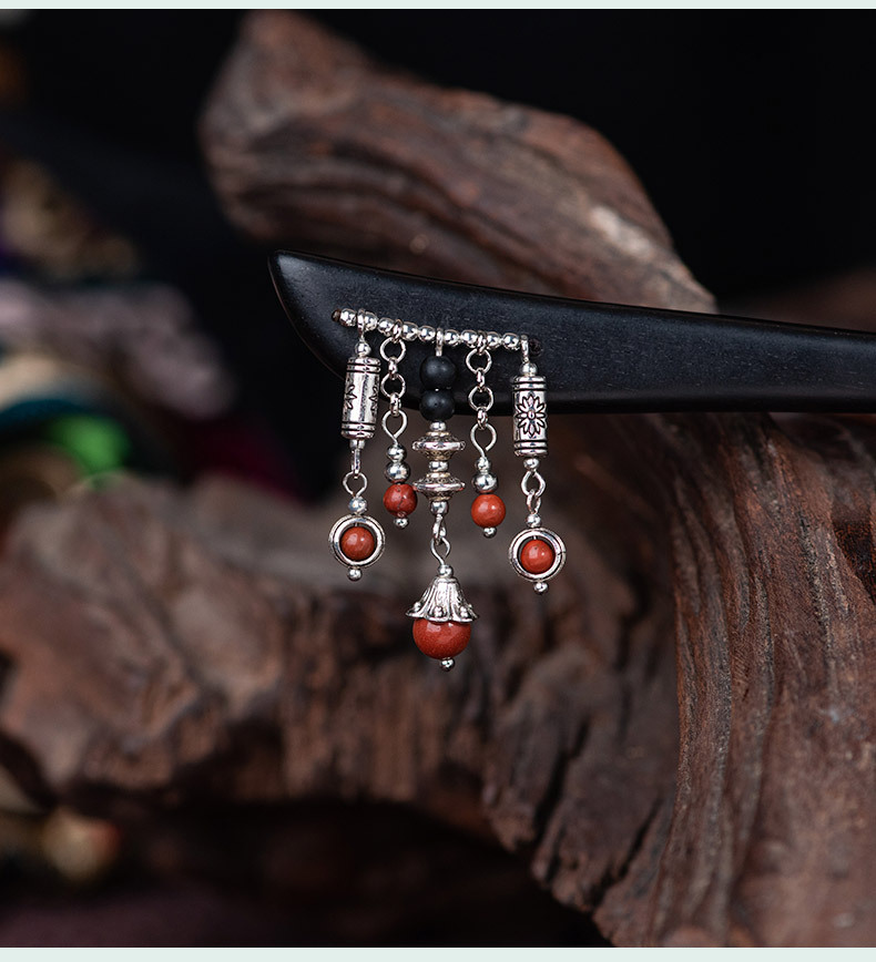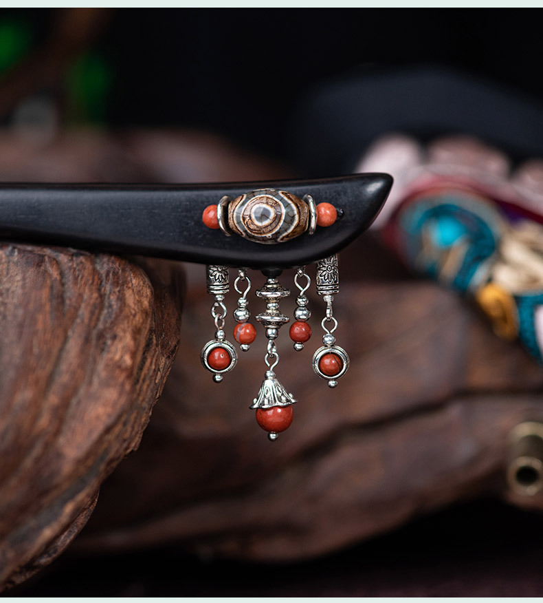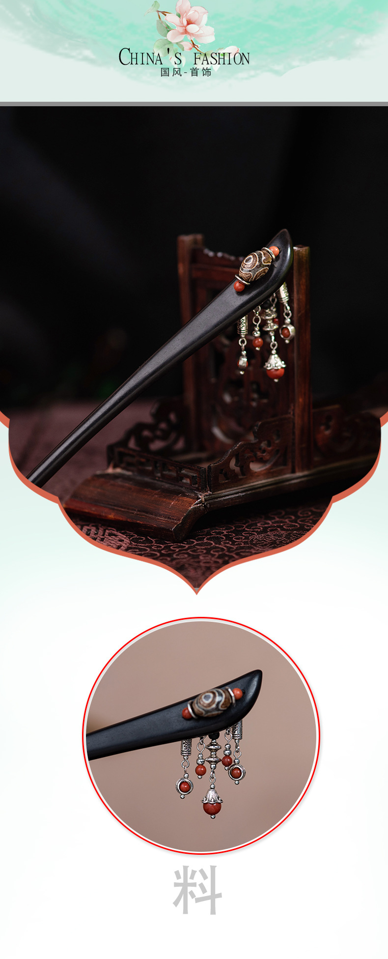 JGL黑檀木天珠玛瑙发簪新中式流苏发簪子古风汉服盘发头饰设计款簪子