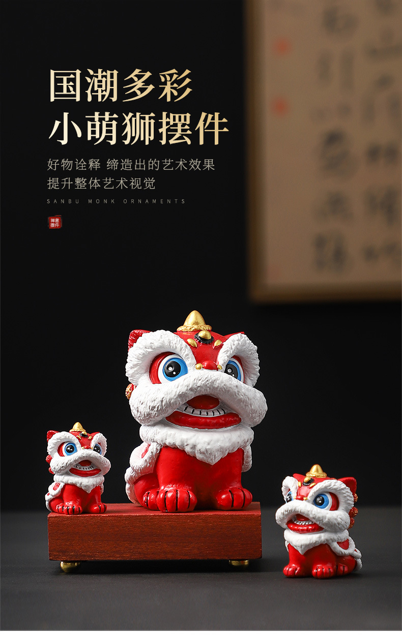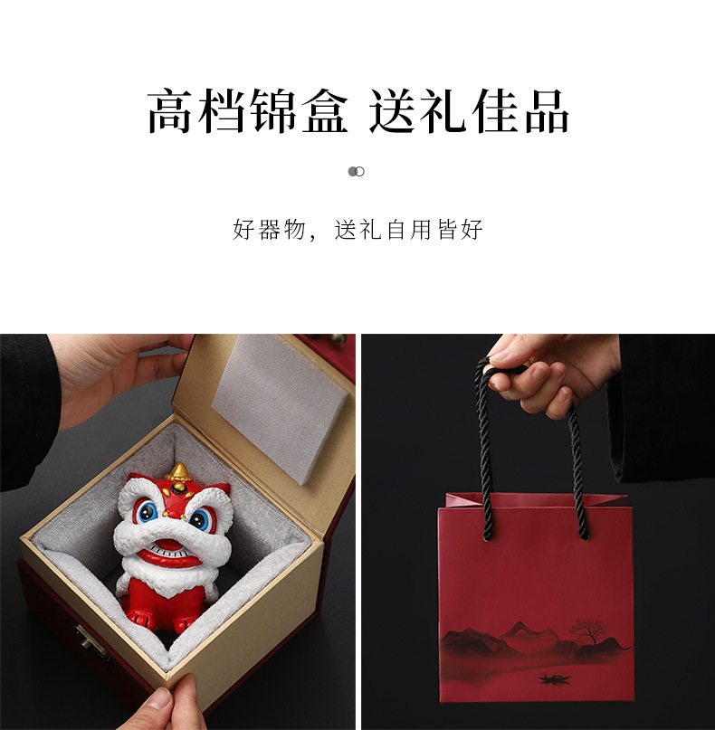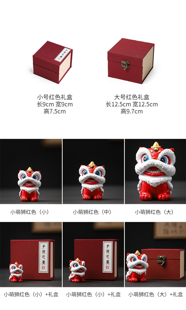 【手工雕刻立体逼真❗️精美锦盒装】国风红色喜庆醒狮摆件送客户老外高级感工艺品伴手礼创意生日礼物。jc