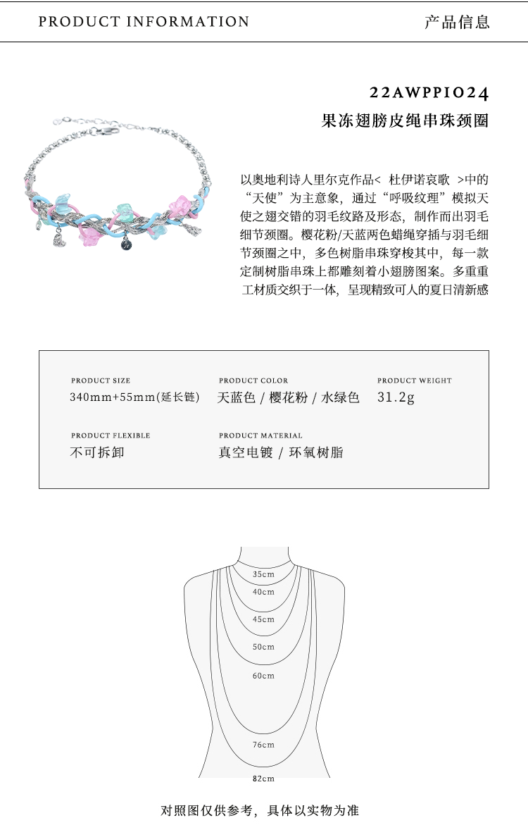 ATELIERSO 22AW果冻系列 果冻翅膀皮绳串珠颈圈