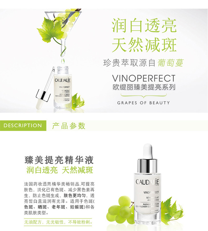 法国欧缇丽Caudalie完美淡斑精华乳液30ML