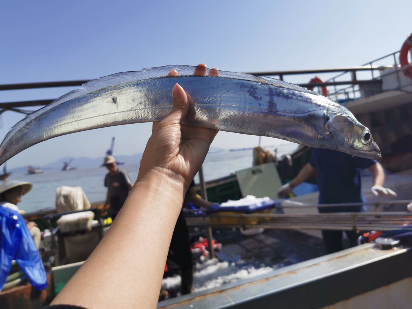 而渔民在拔掉鱼钩的过程中,也会有鱼血从鱼嘴里渗出,被放血的带鱼更加美味