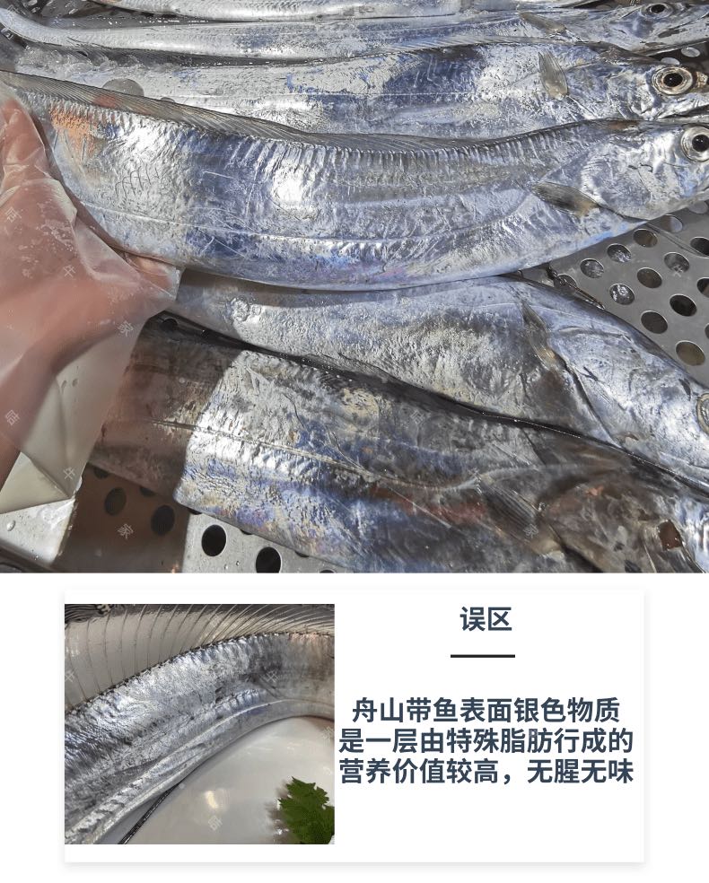 5 、由于舟山东海钓带,均为野生海钓。可能会出现部分鱼钩残留再带鱼的嘴巴里,大家收到货清理的时候千万要注意避免扎伤,同时带鱼的牙齿也是非常非常锋利的。再次提醒小心处理,以免伤到手哦!