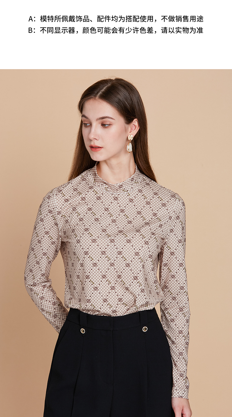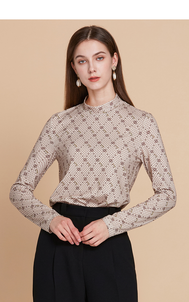 EITIEEITIE爱特爱精致立领打底修身舒适柔软印花2025秋季新款上衣7902605