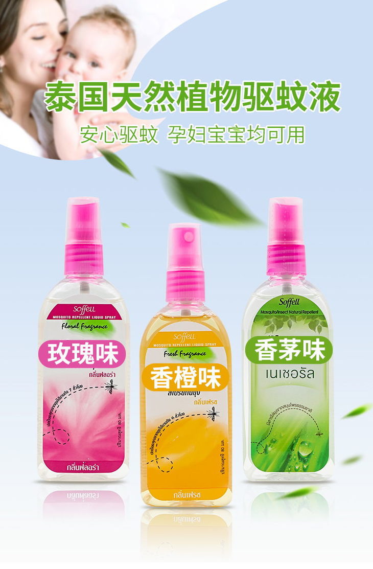 泰国Soffell驱蚊水 玫瑰味/橘子味-30ML/80ML