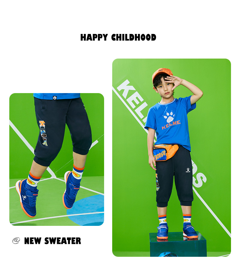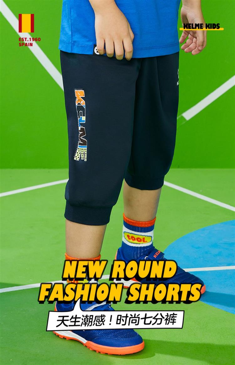 KIDS卡尔美童装男童纯棉七分裤夏季儿童薄款足球运动裤
