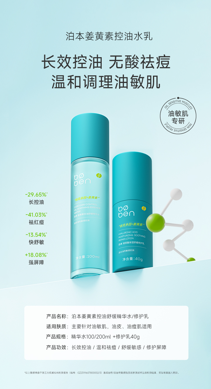 【控油/洗护】泊本姜黄素控油舒缓水乳套装100ml+40g 即时舒敏控油祛痘去闭口收缩毛孔