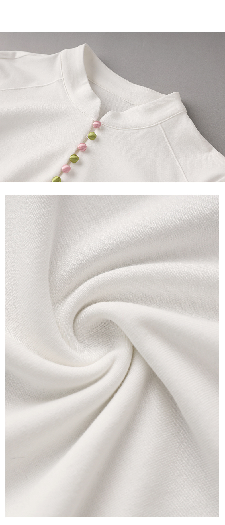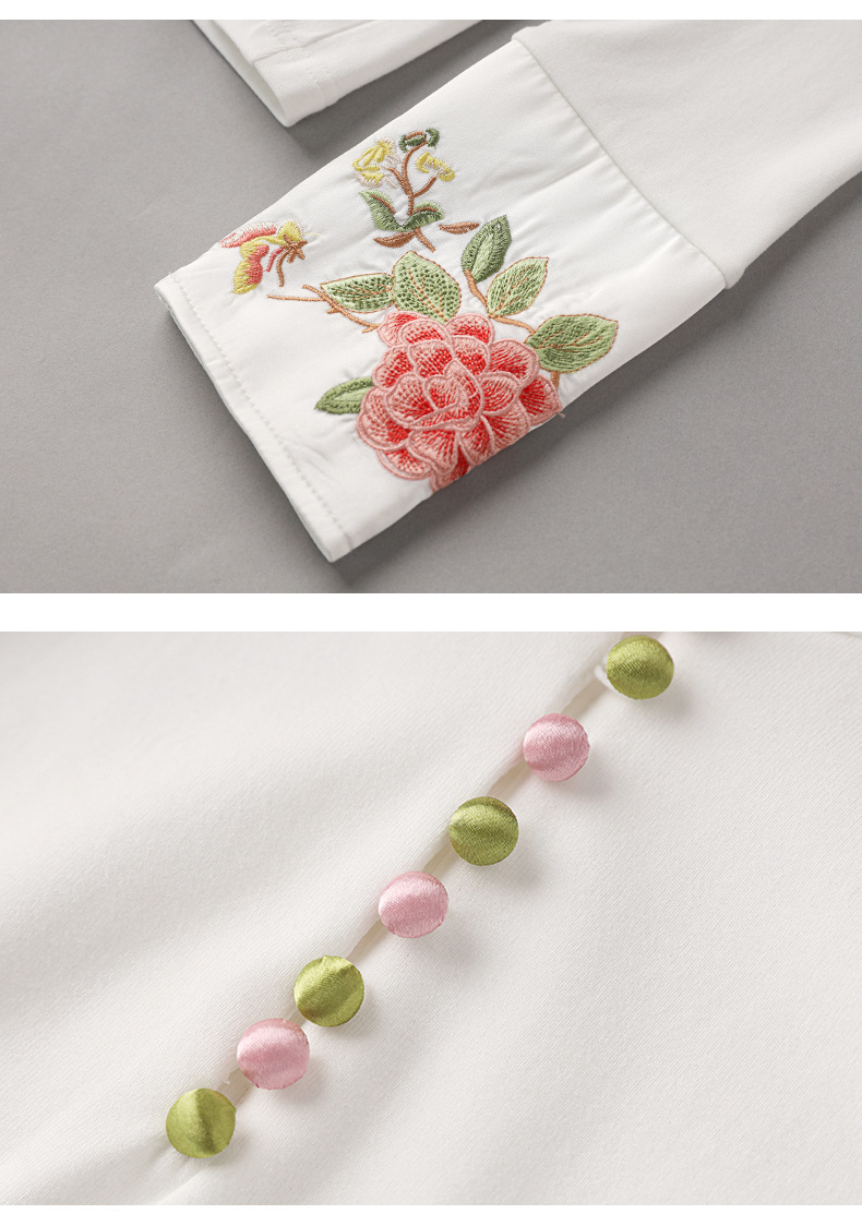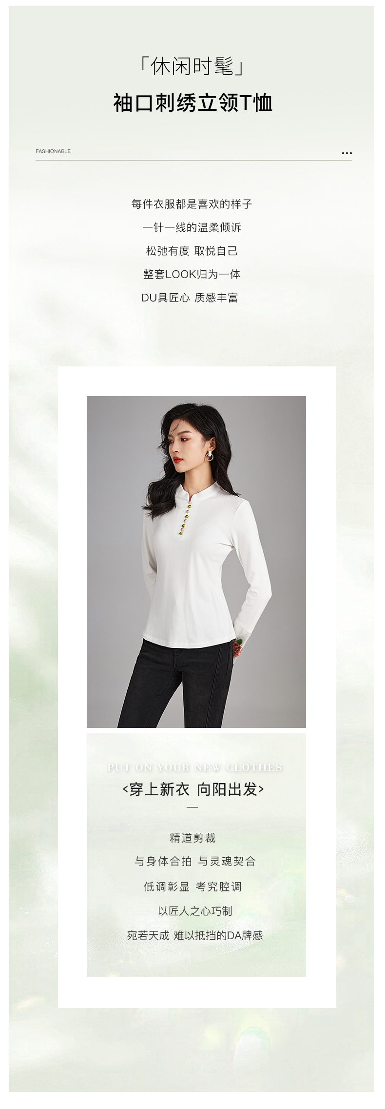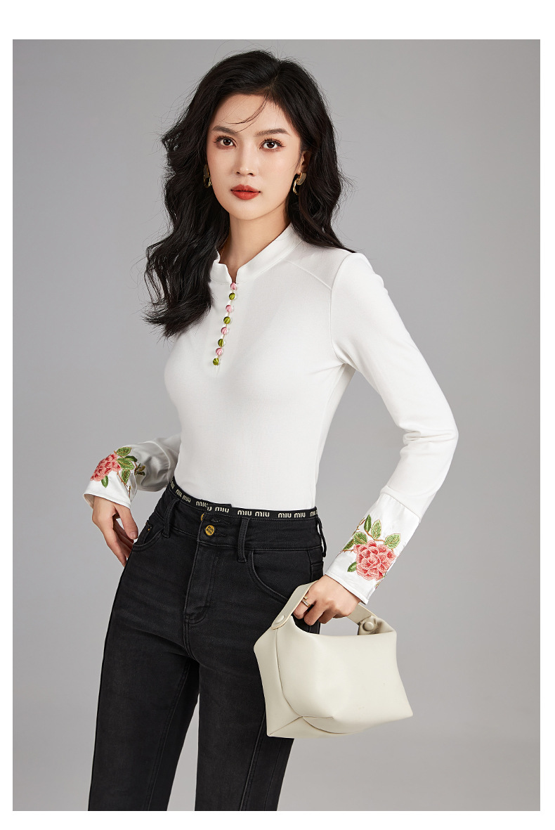 国风重工品质刺绣百搭修身T恤,女装时髦立领打底休闲上衣WLZD-2325503