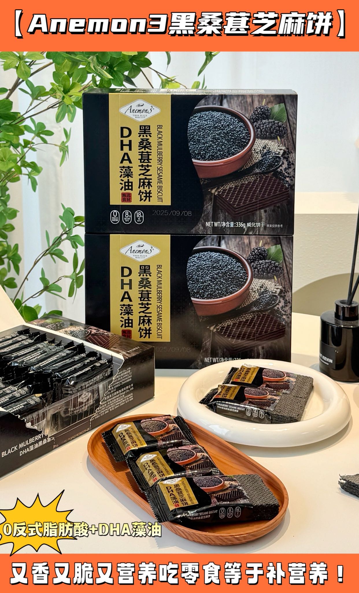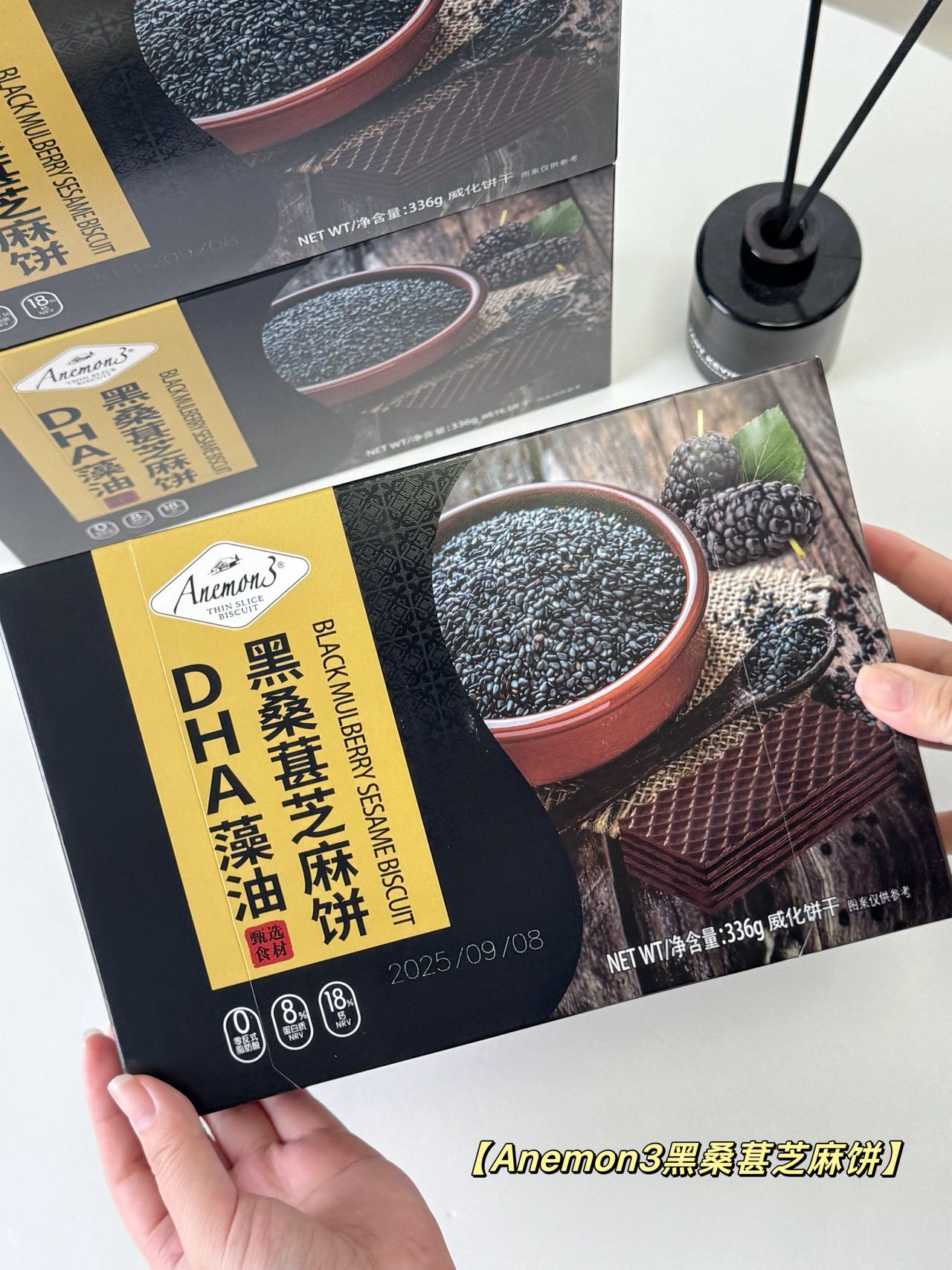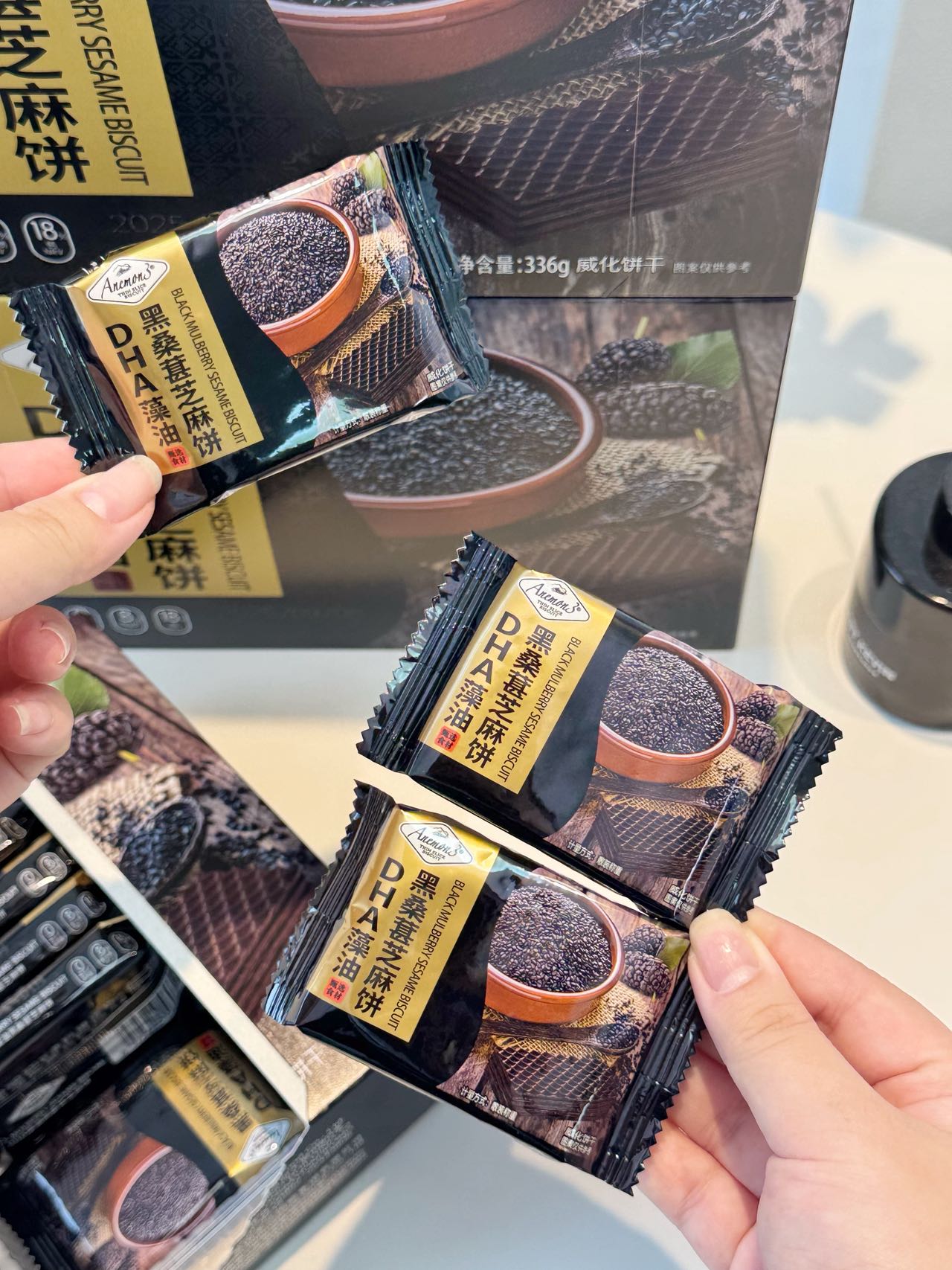 Anemon3爱你们黑桑葚芝麻饼336g ✅ 0 反式脂肪酸+DHA 藻油 ✅黄金成分黑芝麻 + 黑桑葚 ✅8%蛋白质18%钙 / ✅高钙高蛋白 低脂高膳食纤维 ~