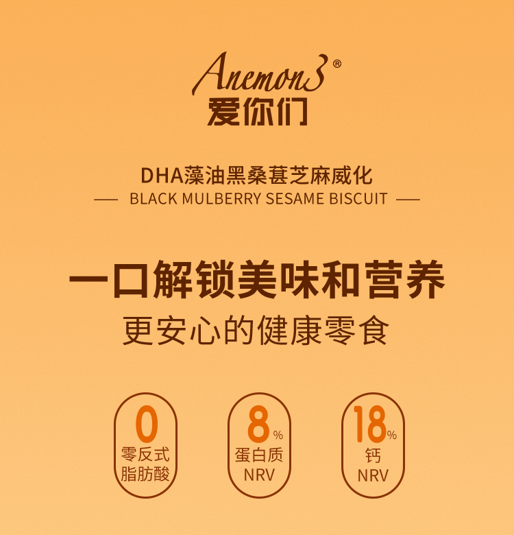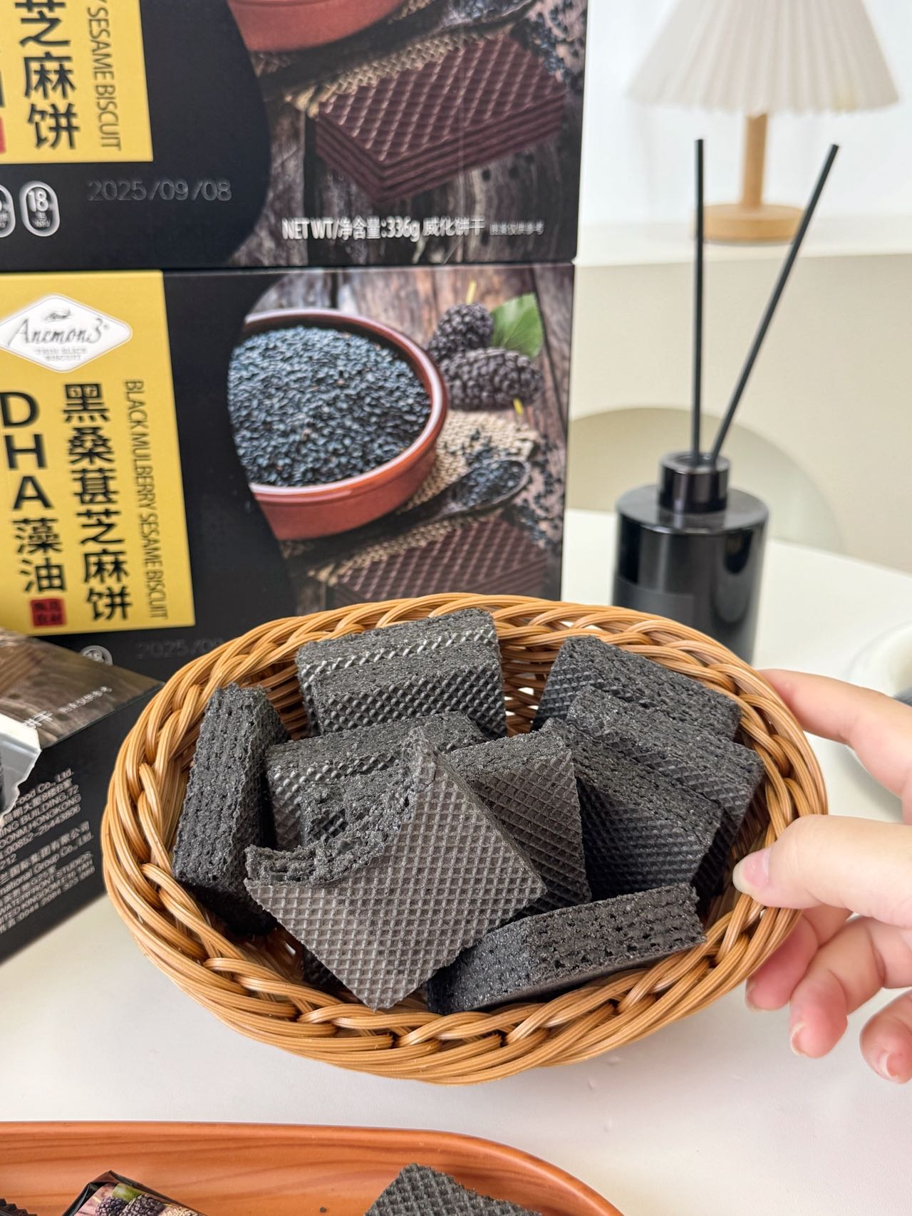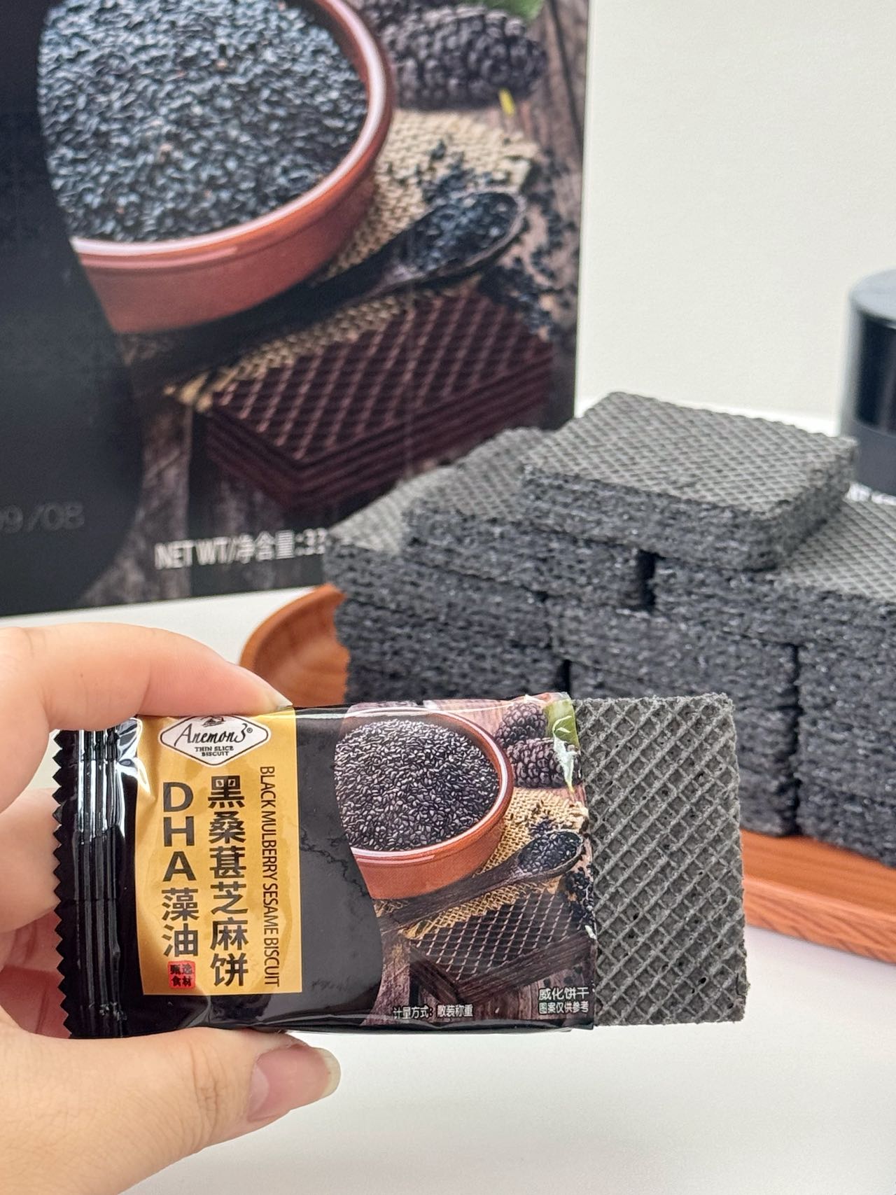 Anemon3爱你们黑桑葚芝麻饼336g ✅ 0 反式脂肪酸+DHA 藻油 ✅黄金成分黑芝麻 + 黑桑葚 ✅8%蛋白质18%钙 / ✅高钙高蛋白 低脂高膳食纤维 ~