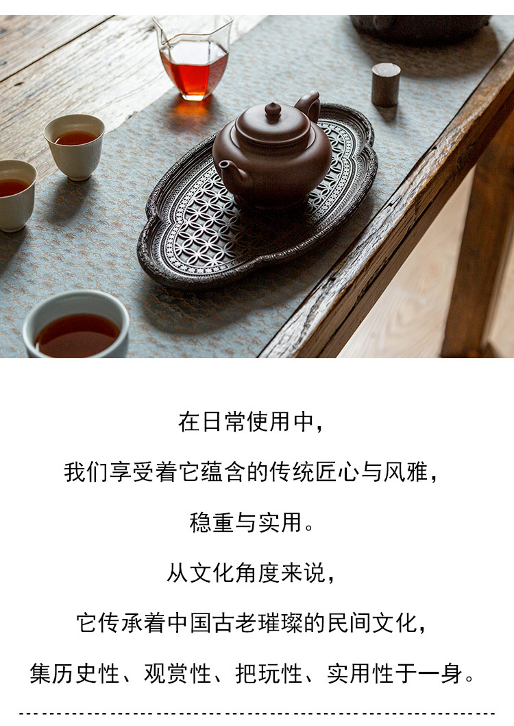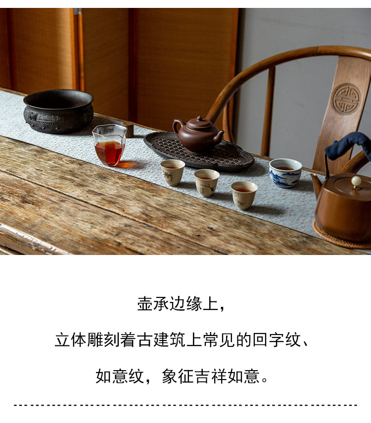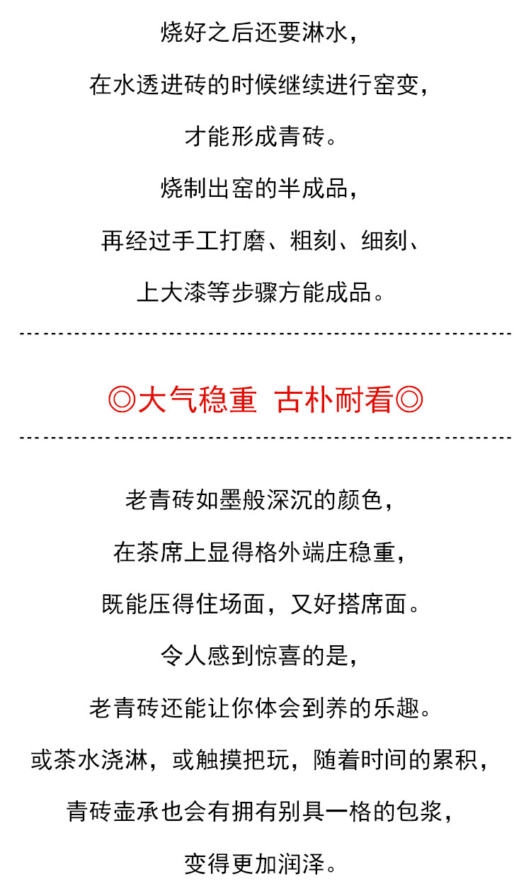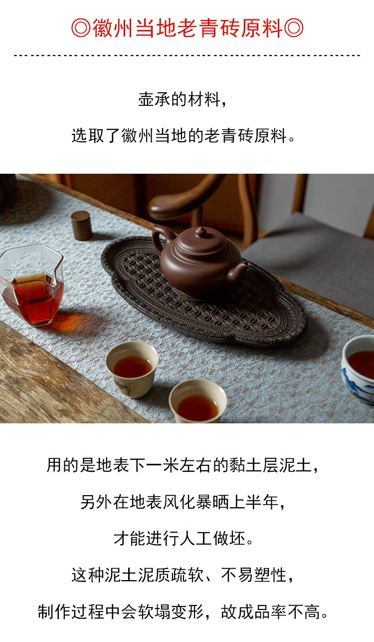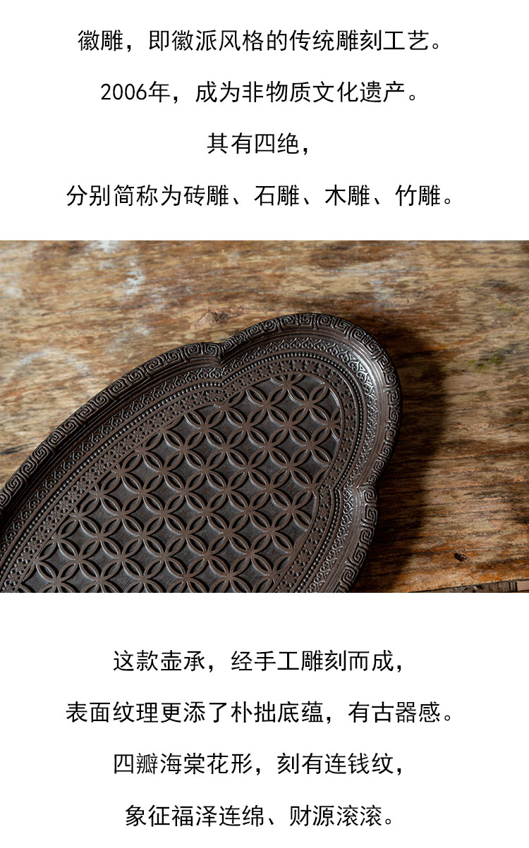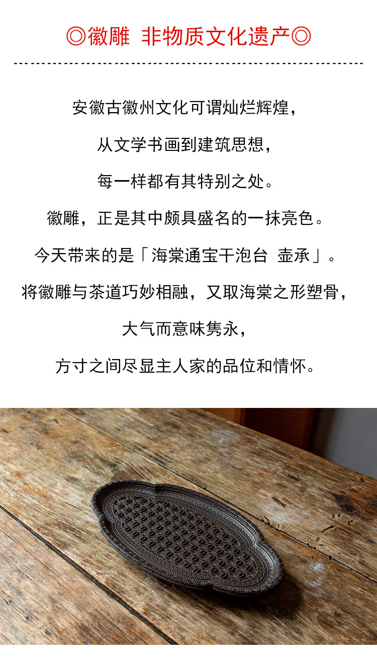茶香记 海棠通宝干泡台徽派雕刻老青砖壶承大气稳重古朴耐看茶具