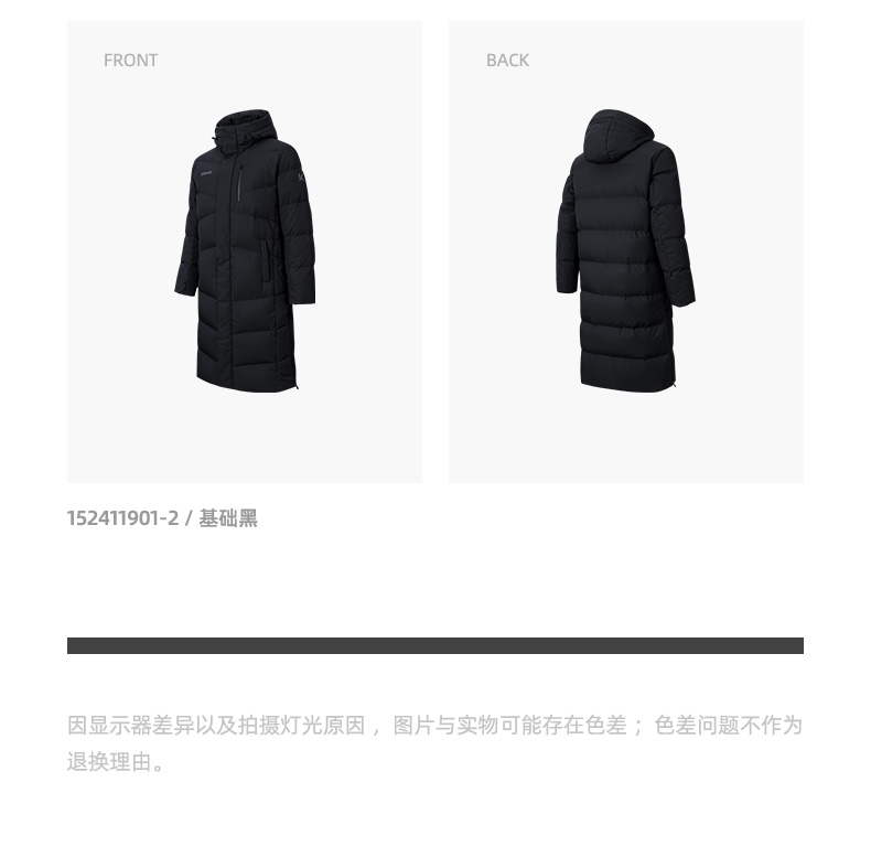 安踏雪壳羽绒服丨防泼水长款羽绒服男冬季保暖舒适羽绒服152411901