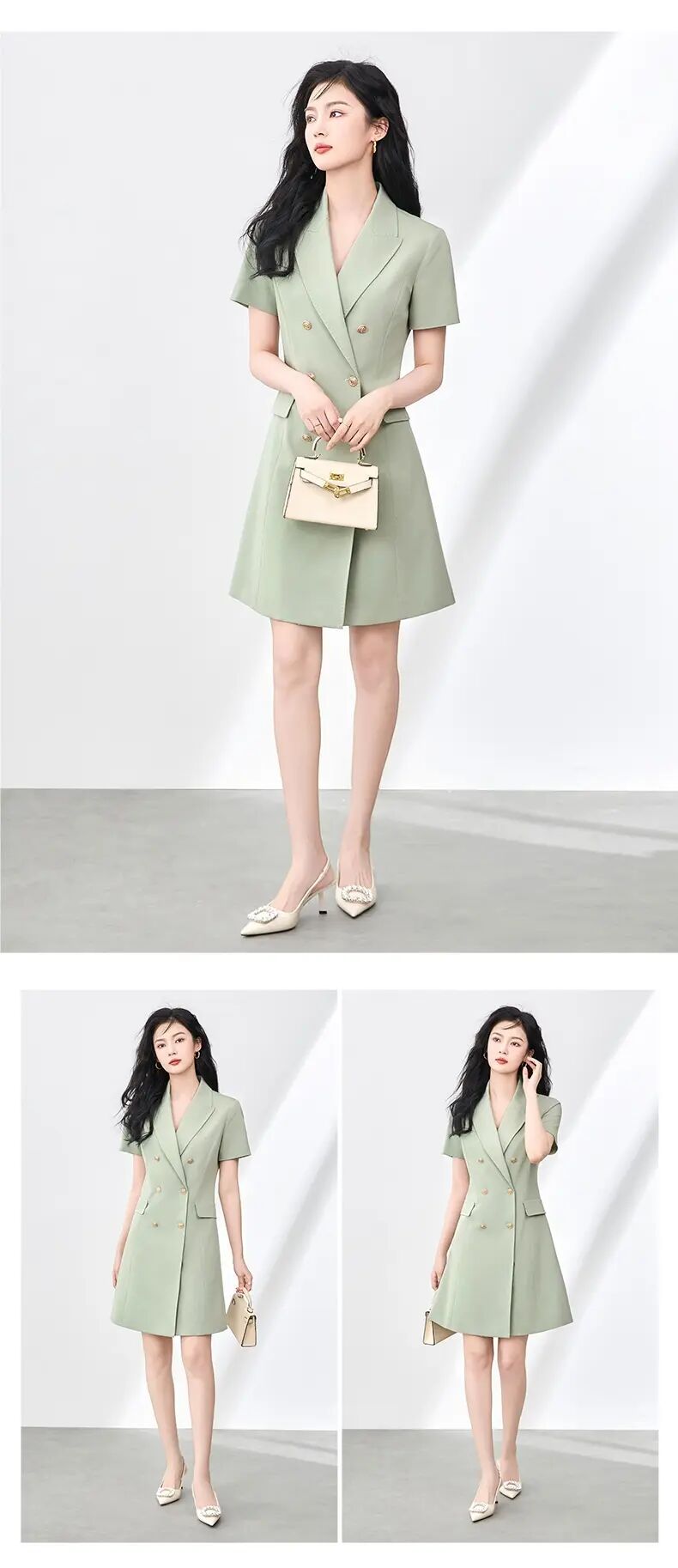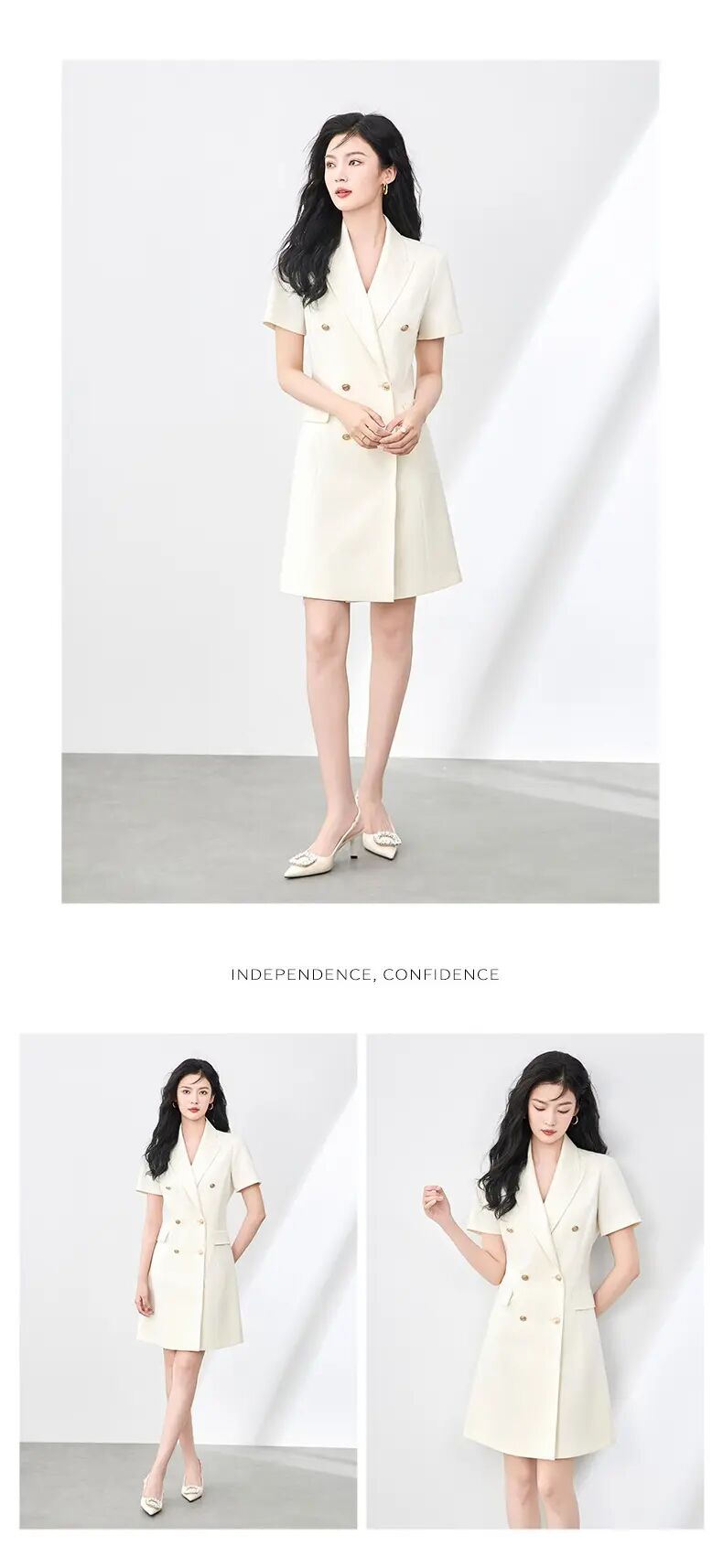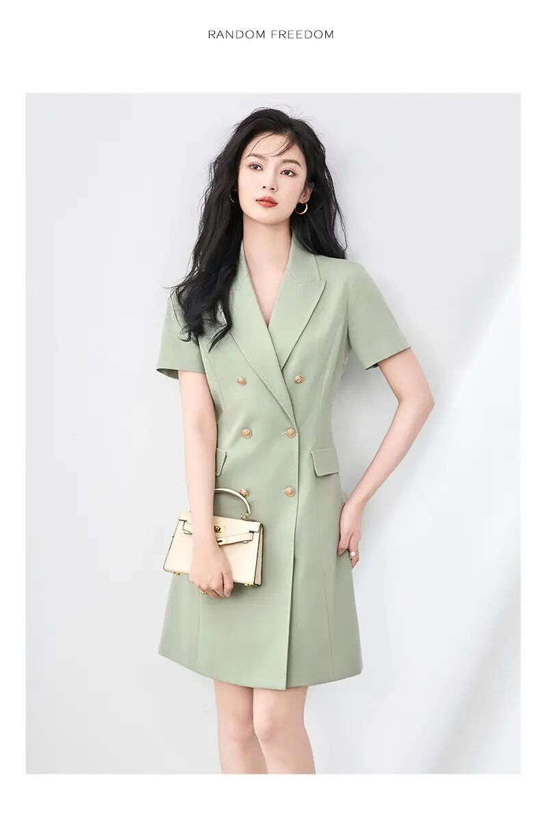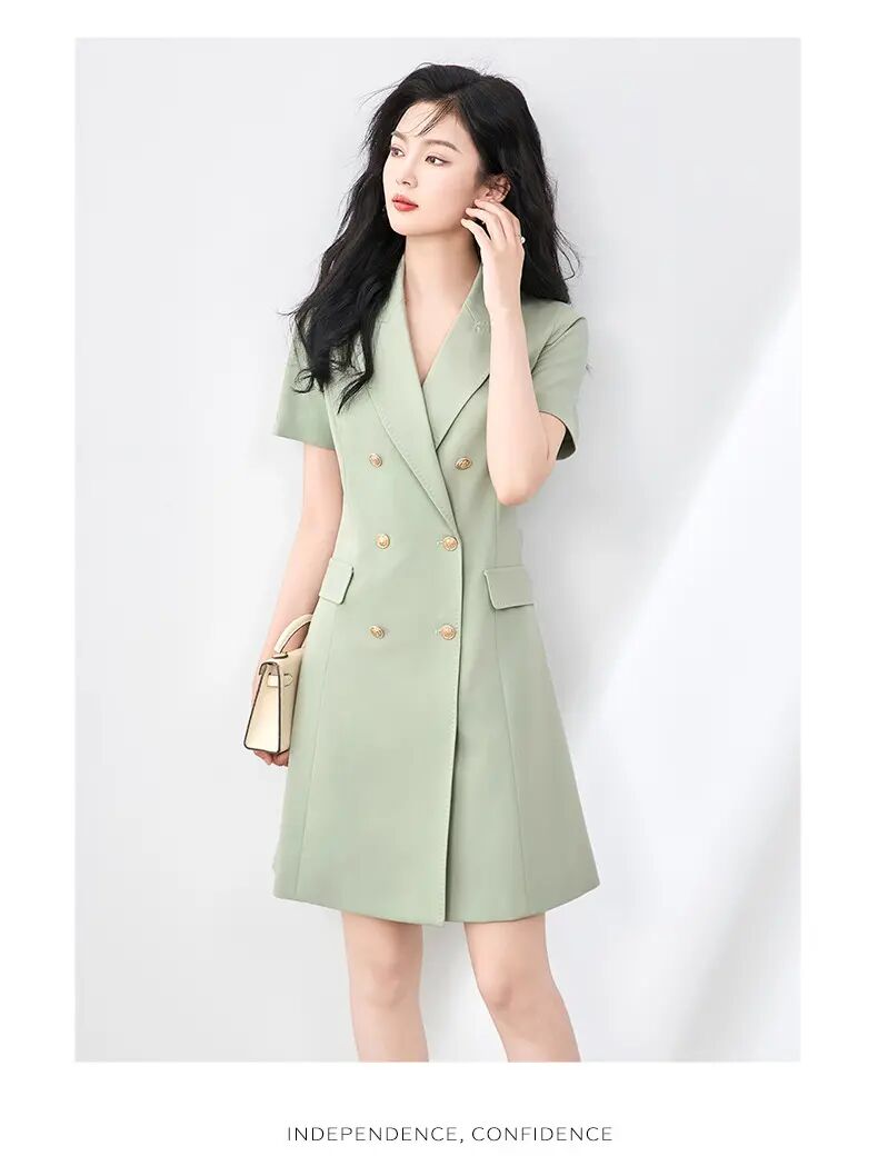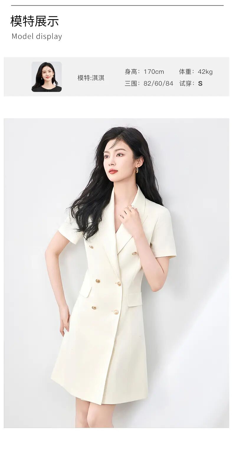 【高货wl】全新升级【铂金会员330/天猫449/差价119】(00555)洛诗琳高级感气质通勤翻领双排扣西装裙职业收腰显瘦裙子女