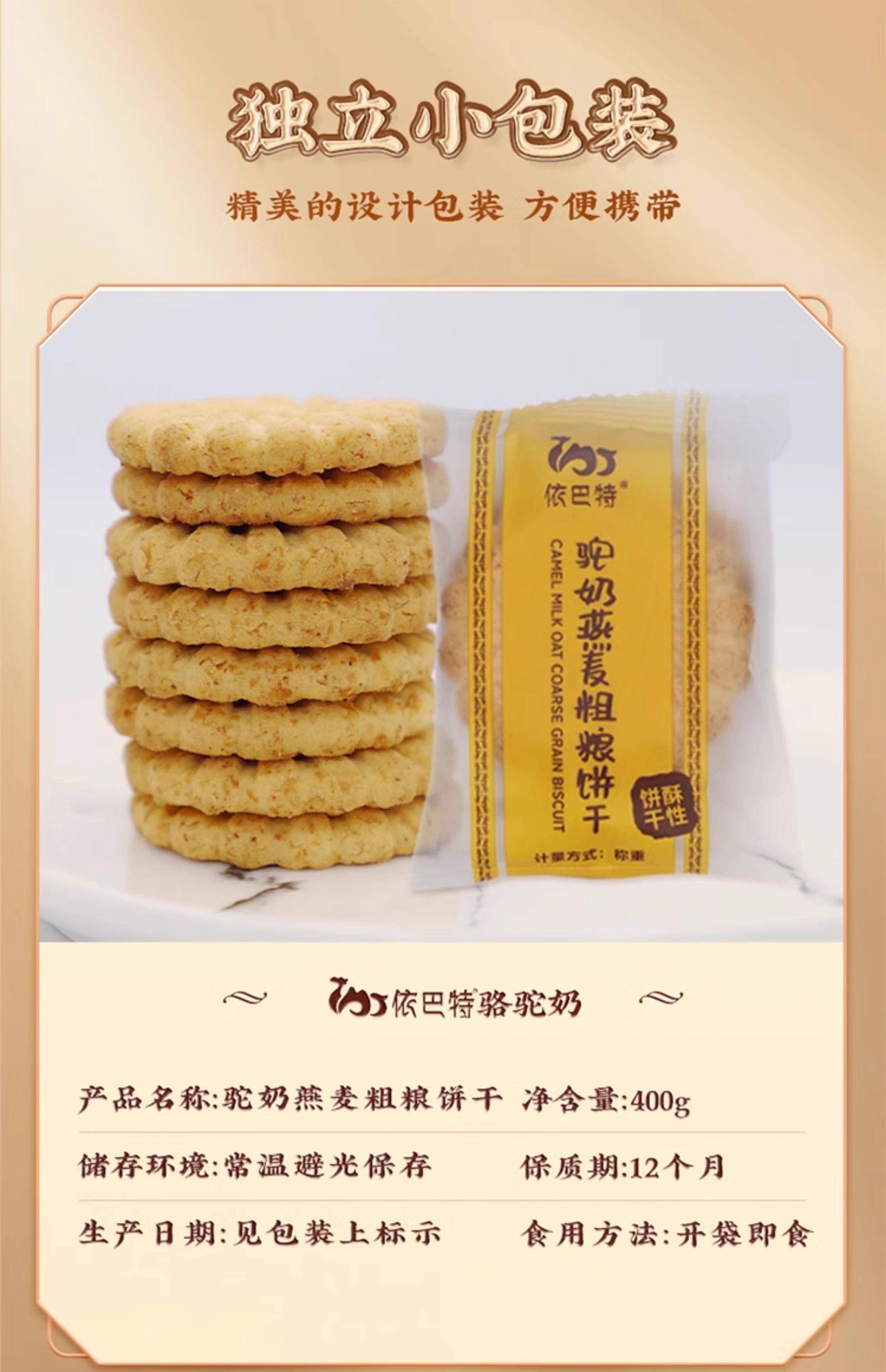 依巴特·驼奶燕麦粗粮饼干400g*3 香酥可口 0蔗糖