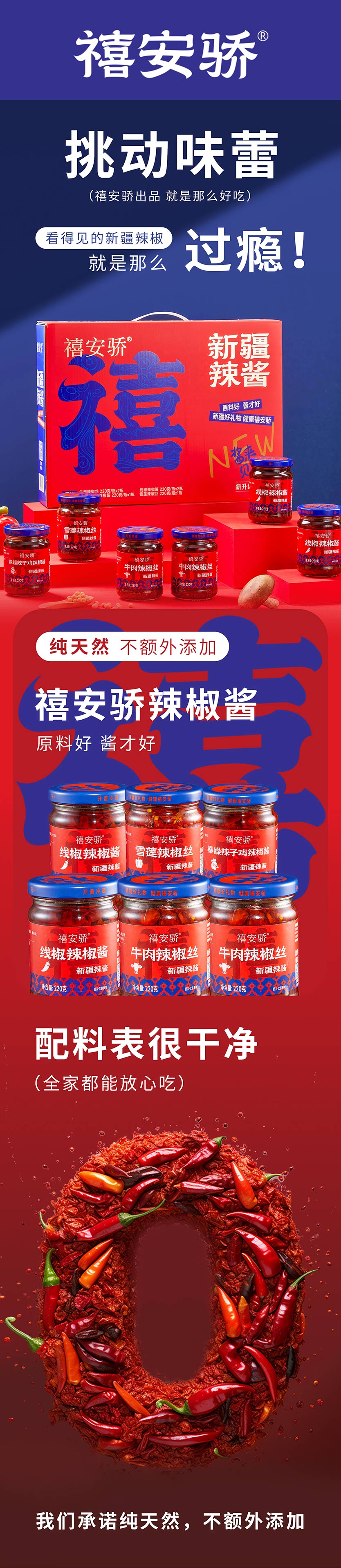 禧安骄·酱来见禧辣椒酱大礼盒220g*6瓶 厨房必备+送礼佳品