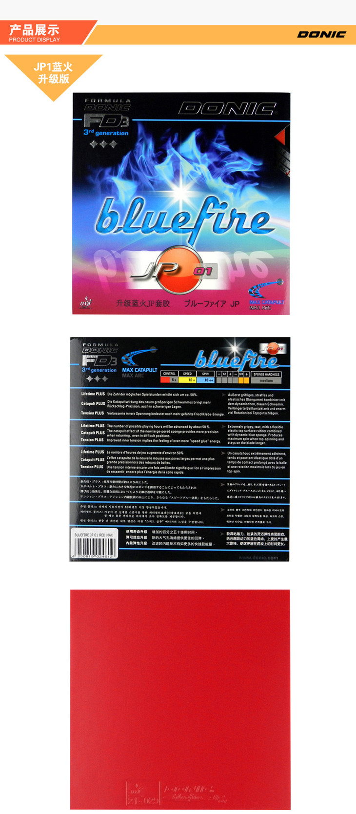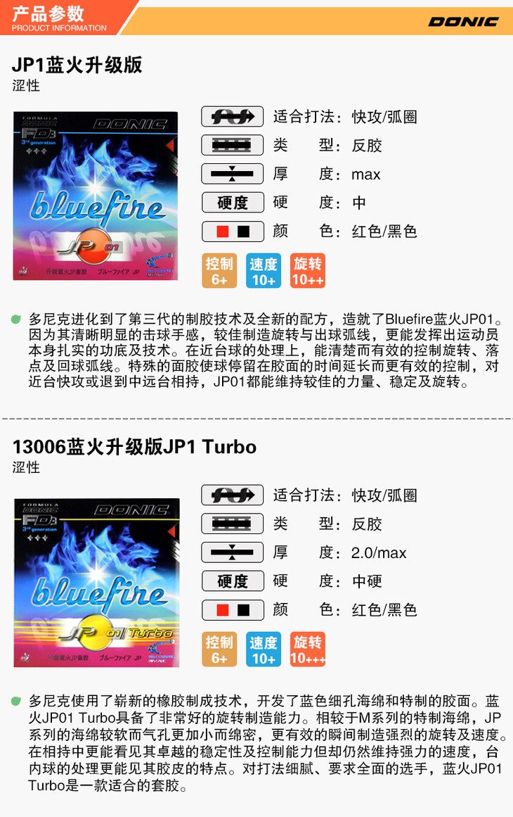 DONIC多尼克蓝火升级JP1加强 版JP2 JP3 鬼火Bluefire 正品行货