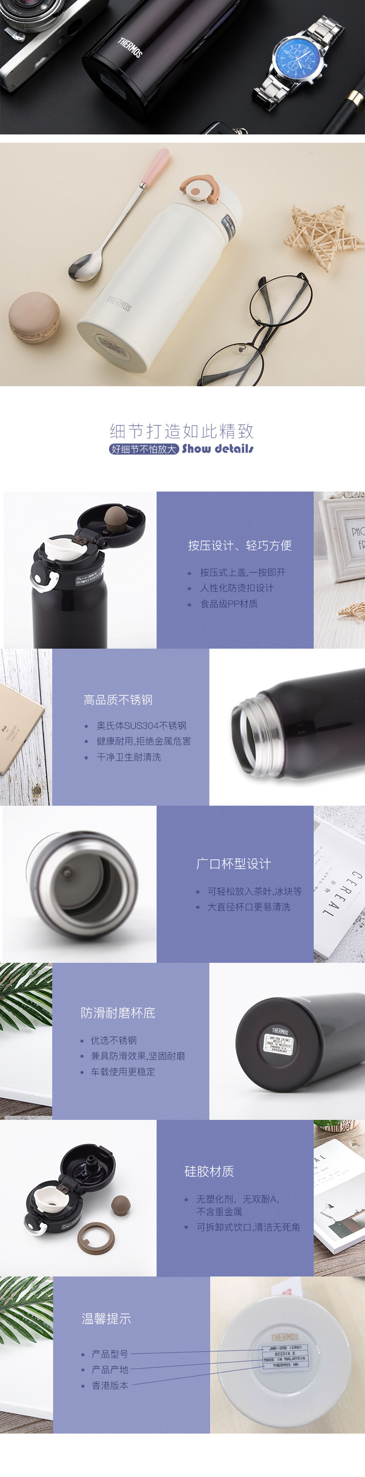 【海外直邮】THERMOS/膳魔师 真空不锈钢超轻便携保温水杯 350ml/500ml/600ml