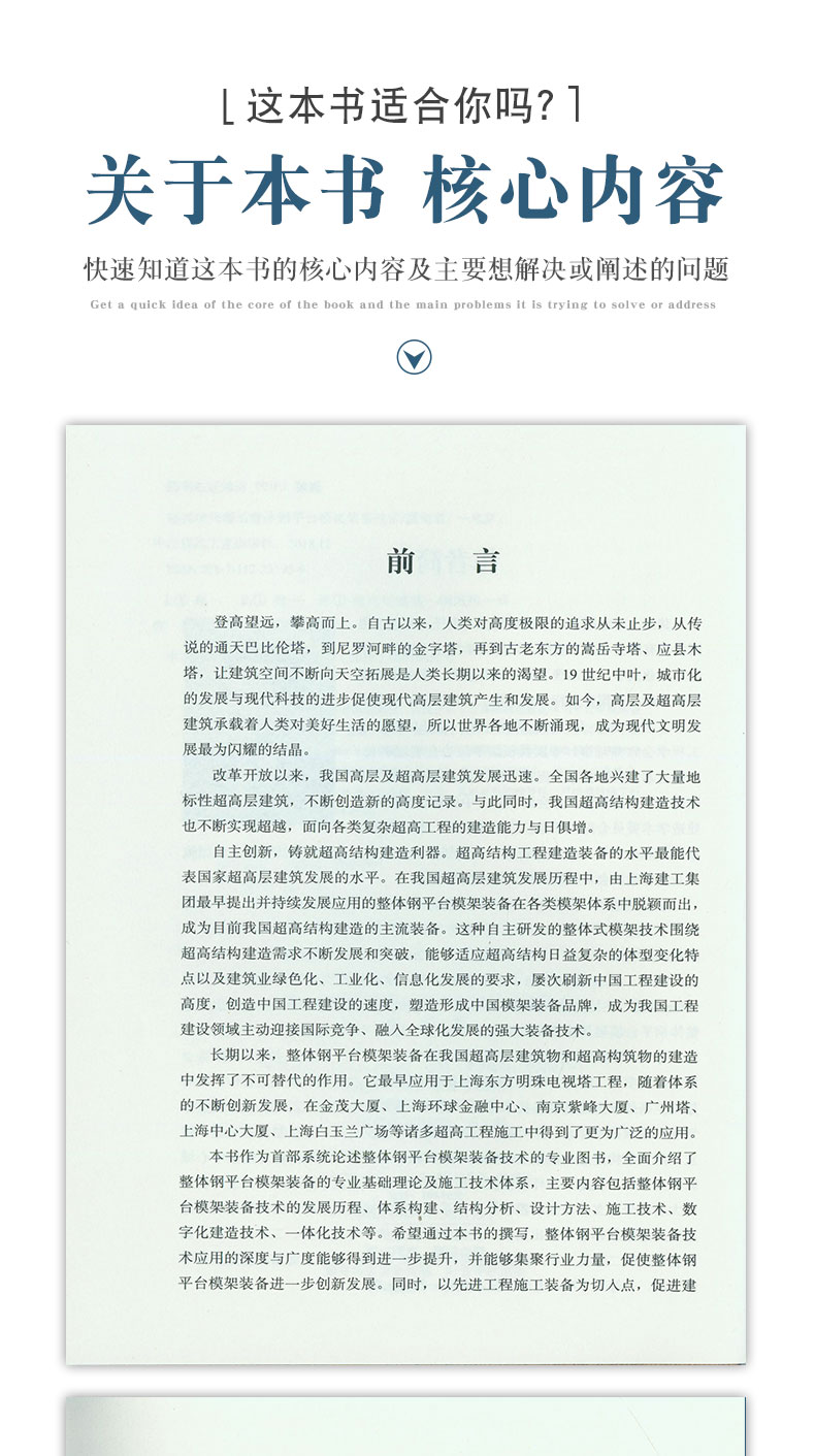 本书基于上海建工集团承担的“十二五”国家科技支撑计划项目“千米级超高层建造整体钢平台模架及输送泵装备研发与示范”的科研成果。这是国内首个关于“千米级”高楼建造的科研项目,标志着中国已拥有建造“千米级超高层建造”关键装备和技术,具备自主建造千米级高楼的能力。 近二十年来,中国建造了众多超高层建筑,已成为超高层建造的大国,但过去不少关键设备主要依赖进口。 上海在造金茂大厦之前,建造超高层建筑的塔吊、混凝土泵车等关键设备要购买国外的,在建造环球金融中心以后,国产设备逐渐开始唱‘主角’。而千米级超高层建造整体钢平台模架及输送泵装备研发与示范作为国内第一个关于千米级高楼建造的科研项目,通过研究建立了具有核心竞争力和自主知识产权的超高层建筑建造成套技术体系,将带动整个建筑行业的技术进步。