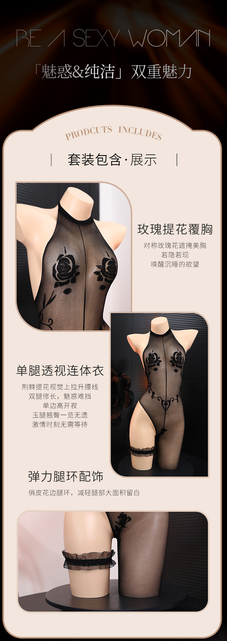 【情趣内衣】霏慕 荆棘玫瑰女团阿狸连身丝袜7454